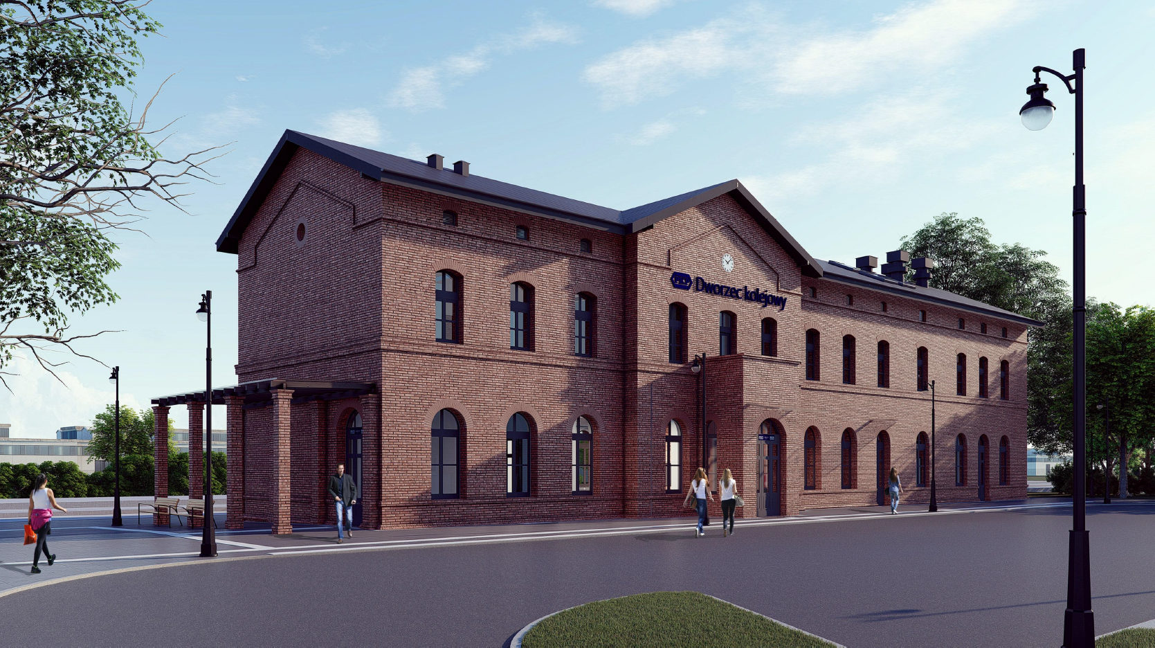 Rewitalizacja obejmie bezpośrednie otoczenie dworca. Zostanie ułożona nowa nawierzchnia chodników, podjazdu oraz wytyczone miejsca parkingowe. Przed wejściem do dworca zlokalizowano, w projekcie, strefę postoju chwilowego (kiss&ride), miejsca postojowe dla osób z niepełnosprawnościami oraz taksówek. Nieco bliżej ulicy znajdzie się 11 miejsc parkingowych. Na przebudowanym placu przed dworcem zaprojektowano również stojaki oraz wiatę rowerową, a także elementy małej architektury: ławki, kosze na śmieci, oświetlenie. Uporządkowane zostaną tereny zielone.