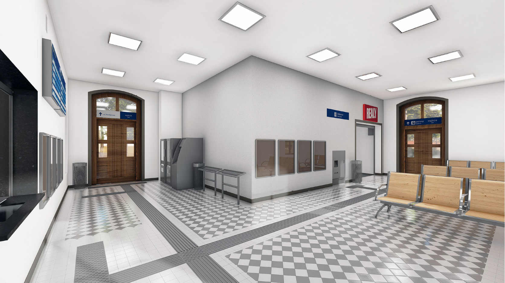 Metamorfozę przejdzie przestrzeń obsługi podróżnych. Zgodnie z projektem na parterze budynku zlokalizowano przestrzeń obsługi podróżnych - hol pełniący funkcję poczekalni. W jego pobliżu umiejscowiono pomieszczenie kasy biletowej, kompleks toalet oraz przyszły lokal komercyjny. Strefa obsługi podróżnych dworca będzie posiadała nowoczesny wygląd (wyposażenie, oprawy oświetleniowe etc.), choć część detali wnętrza, np. posadzka czy stolarka okienna i drzwiowa, nawiążą swoim wyglądem do historycznego charakteru dworca. W przestrzeni dworca pojawią się również elektroniczne tablice przyjazdów i odjazdów pociągów, a także nowy system informacji głosowej.