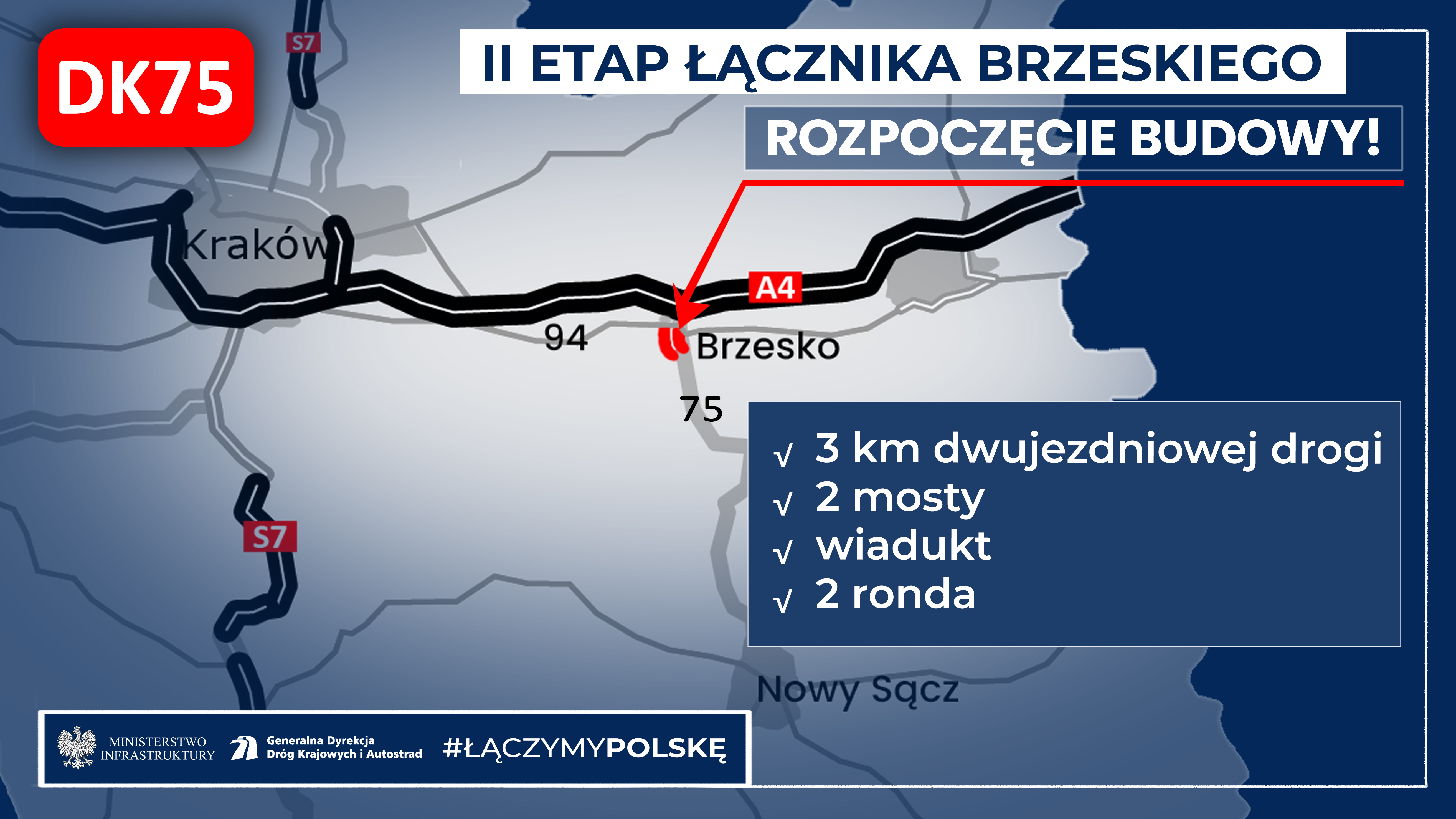 26 września 2022 r. rozpoczęła się budowa kolejnego odcinka łącznika brzeskiego w ciągu drogi krajowej nr 75 w Małopolsce. To jednocześnie pierwszy budowany odcinek nowej, dwujezdniowej DK75 Brzesko – Nowy Sącz, nazywanej sądeczanką.