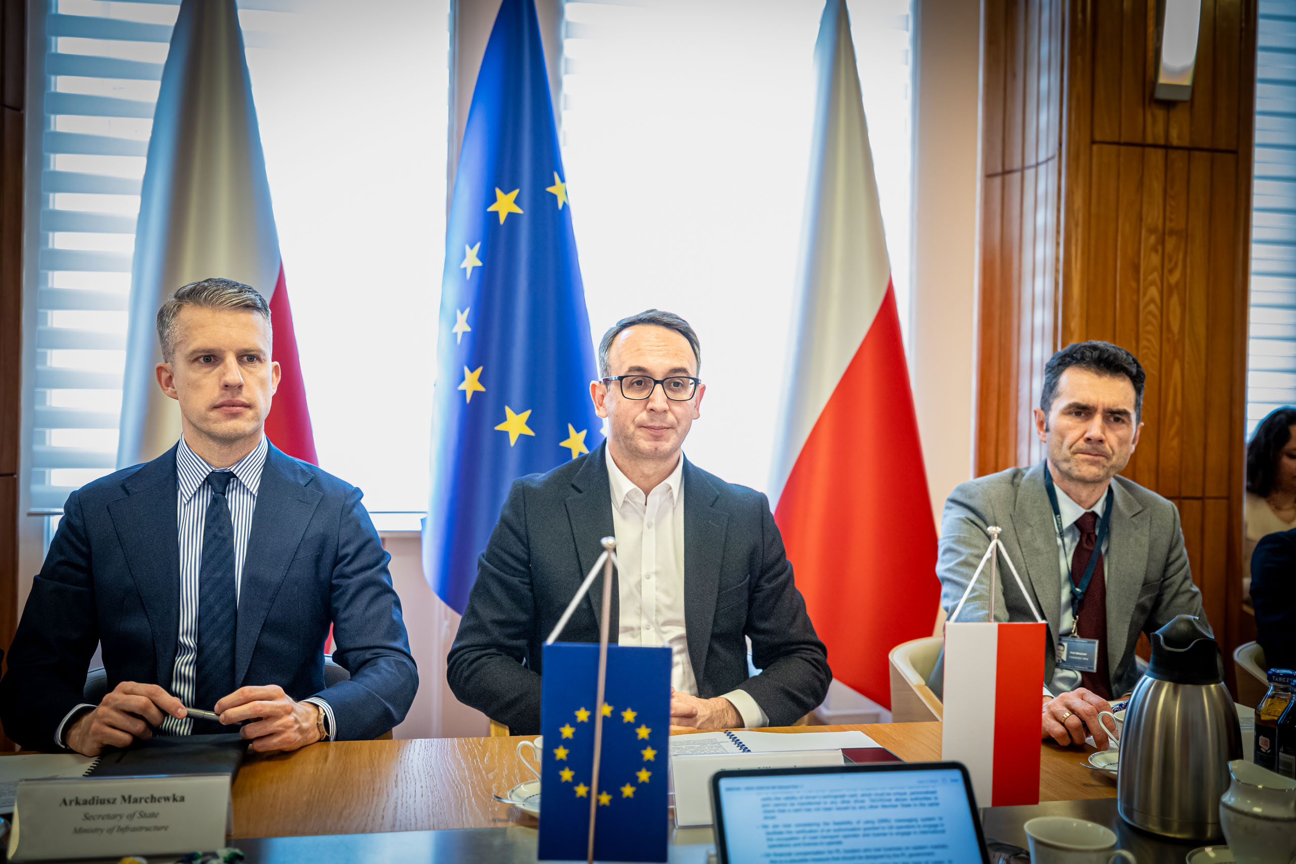 Plany, priorytety i wyzwania polskiej oraz unijnej polityki transportowej to najważniejsze tematy spotkania kierownictwa Ministerstwa Infrastruktury z Dyrektor Generalną w Dyrekcji Generalnej ds. Mobilności i Transportu Komisji Europejskiej – Magdą Kopczyńską. Głównym przedmiotem rozmów były propozycje zmian Komisji Europejskiej do umowy między Unią Europejską a Ukrainą w sprawie transportu drogowego towarów, o wprowadzenie których zabiegała strona polska. W rozmowach z dyrektor DG MOVE wziął udział minister infrastruktury Dariusz Klimczak oraz wiceministrowie: Arkadiusz Marchewka i Piotr Malepszak.