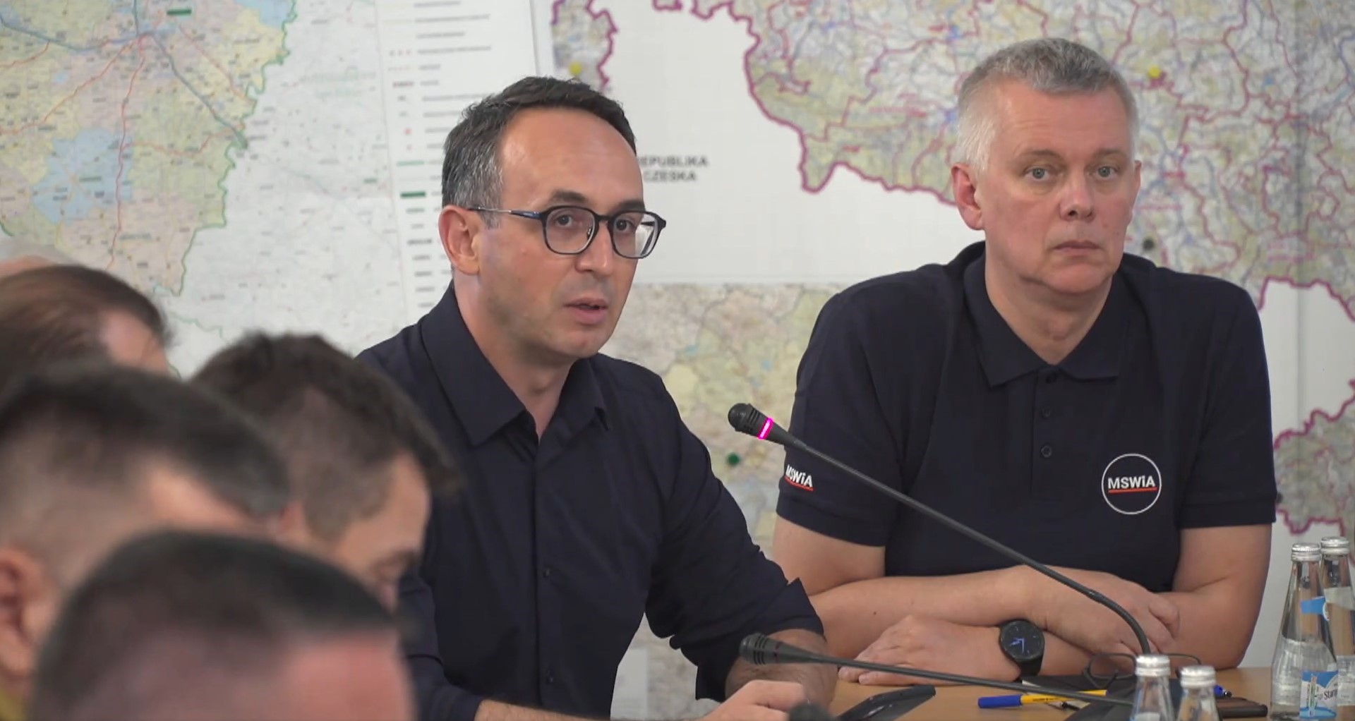 Sztab kryzysowy we Wrocławiu z udziałem ministra infrastruktury Dariusza Klimczaka. Rząd wprowadza stan klęski żywiołowej
