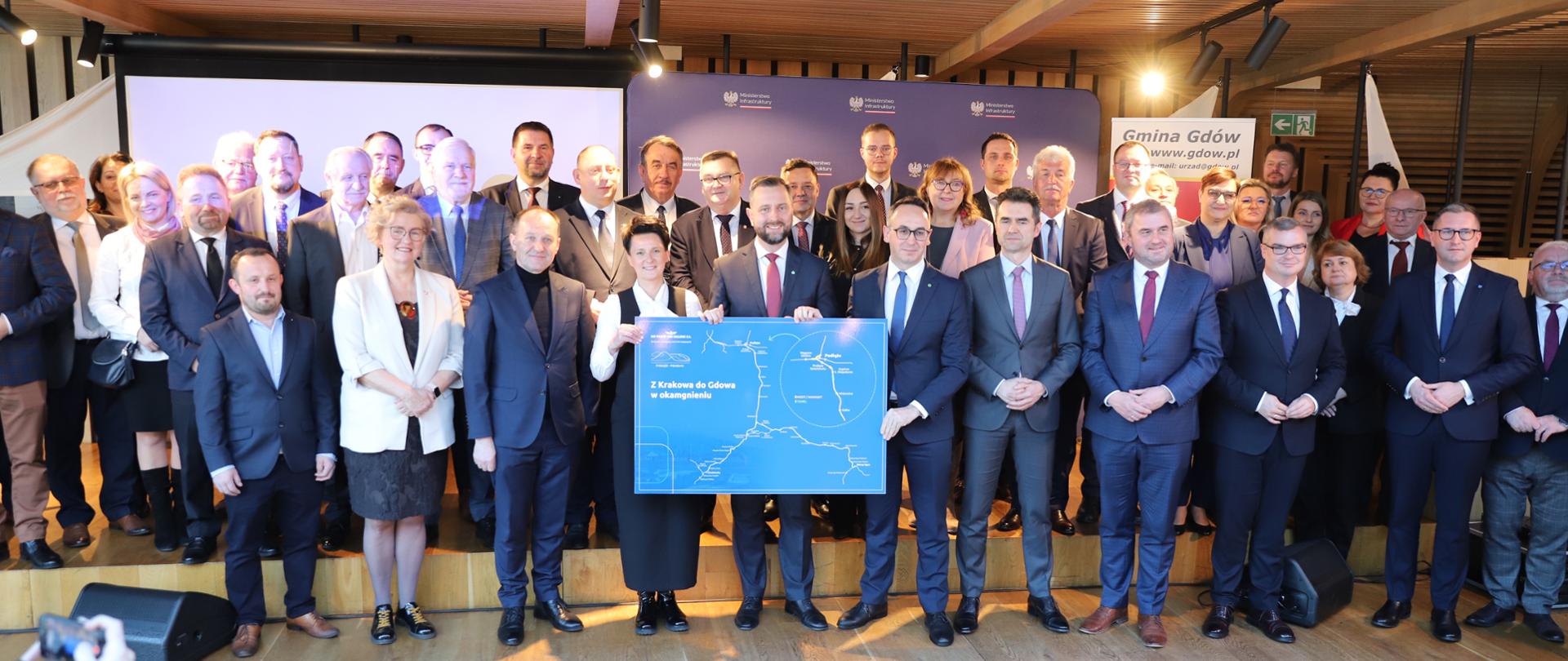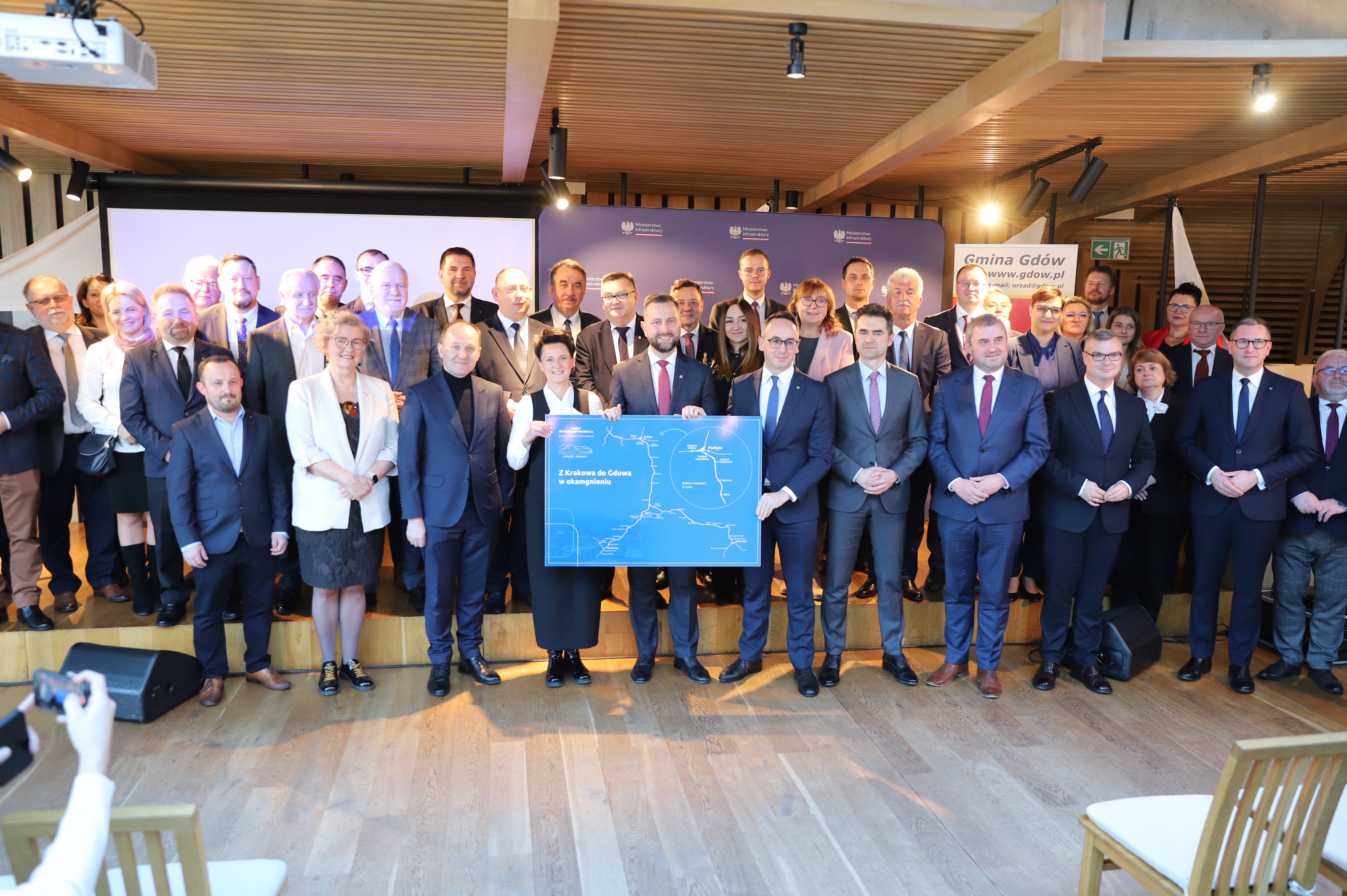 Spółka PKP Polskie Linie Kolejowe ogłosiła przetarg na budowę linii kolejowej pomiędzy Podłężem a Gdowem. Do 2029 r. powstaną nowe tory, mosty, wiadukty i przeszło 900-metrowy tunel. Mieszkańcy Gdowa zyskają szybkie i niezawodne połączenie z Krakowem. Szacowana wartość zadania to 2,3 mld zł. Największa inwestycja kolejowa na południu kraju usprawni komunikację, skróci podróże do Zakopanego i Nowego Sącza oraz ułatwi transport towarów z i na Słowację. Podczas konferencji prasowej, która odbyła się 18 stycznia 2025 r., poinformowali o tym wicepremier, minister obrony narodowej Władysław Kosiniak-Kamysz, minister infrastruktury Dariusz Klimczak oraz wiceminister infrastruktury Piotr Malepszak.