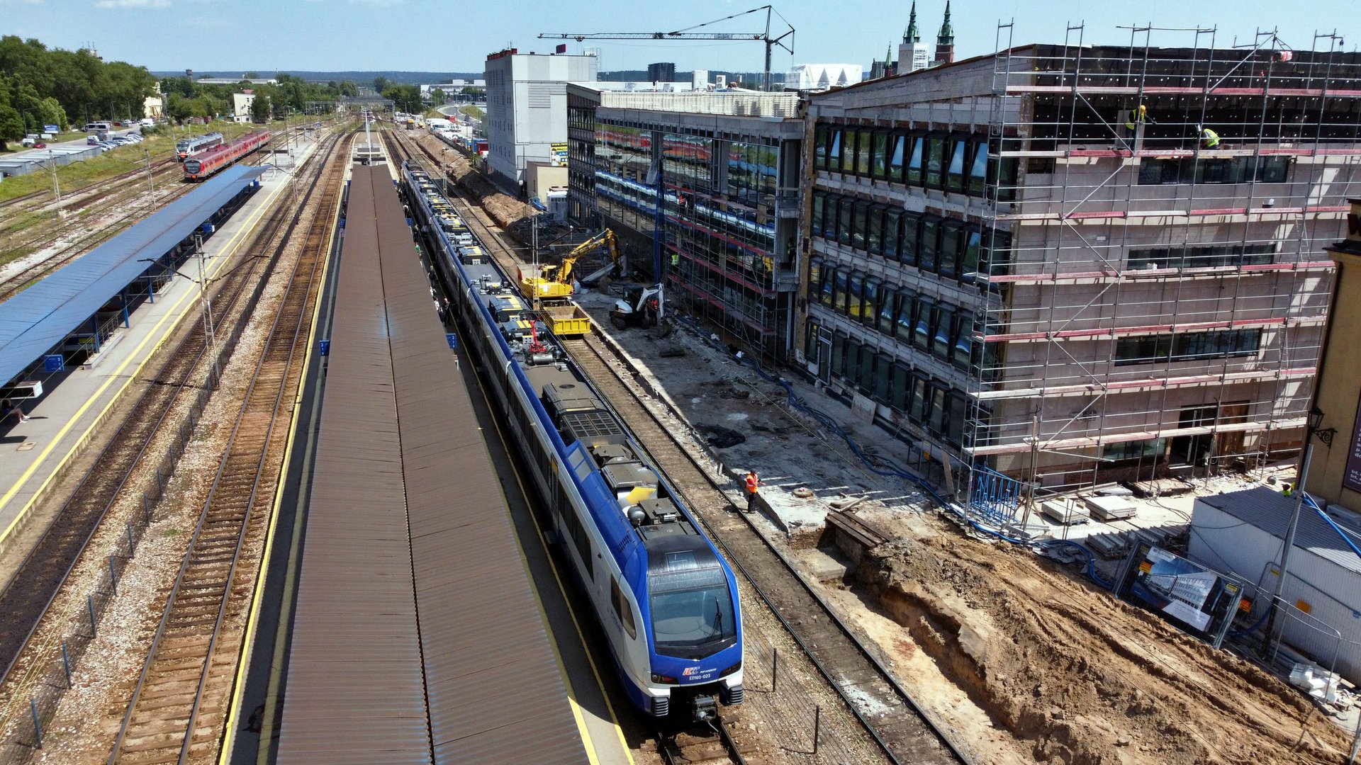 PLK SA przebudowują peron numer 1 na stacji w Kielcach. Pierwsze prace objęły rozbiórkę starej nawierzchni i przełożenie instalacji teletechnicznych. Obecnie wykonawcy przygotowują fundamenty nowego peronu.