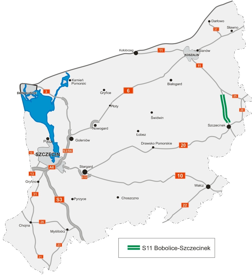 Droga S11 jest jednym z głównych szlaków komunikacyjnych Polski w układzie południkowym, który łączy Śląsk, Wielkopolskę i Pomorze Środkowe. Obecnie na teranie województwa zachodniopomorskiego trwa budowa wspólnego odcinka dróg S6 i S11 z Kołobrzegu do Koszalina oraz obwodnicy Szczecinka. Opracowywana jest też koncepcja programowa dla fragmentu Koszalin - Bobolice, którego realizacja jest przewidziana na lata 2020-2023.