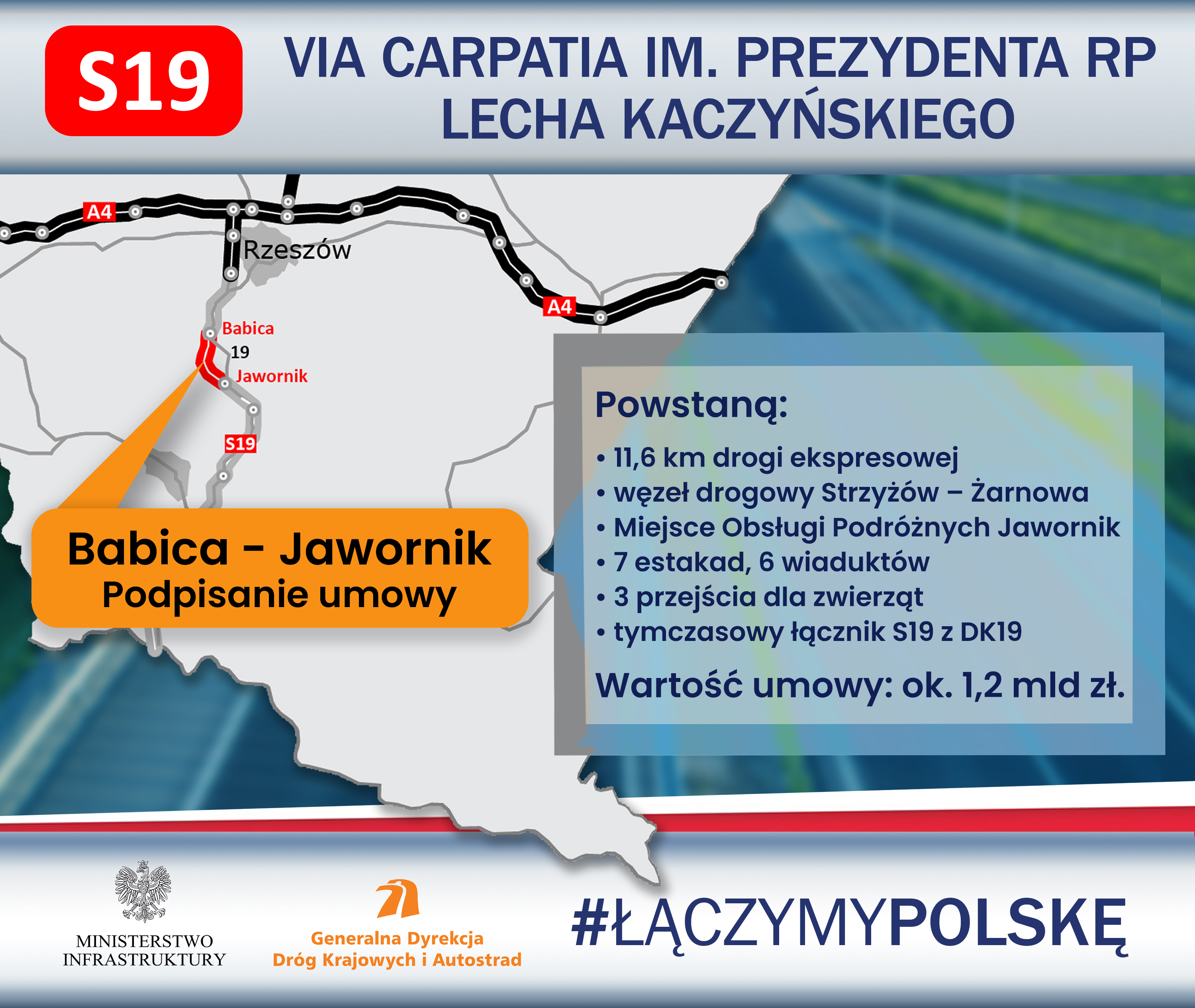 Przedsiębiorstwo Usług Technicznych Intercor opracuje projekt i wybuduje drogę ekspresową S19 na odcinku Babica - Jawornik. Wartość umowy to ponad 1,2 mld zł. W województwie podkarpackim w realizacji jest już pięć odcinków trasy Via Carpatia o łącznej długości 50,5 km.