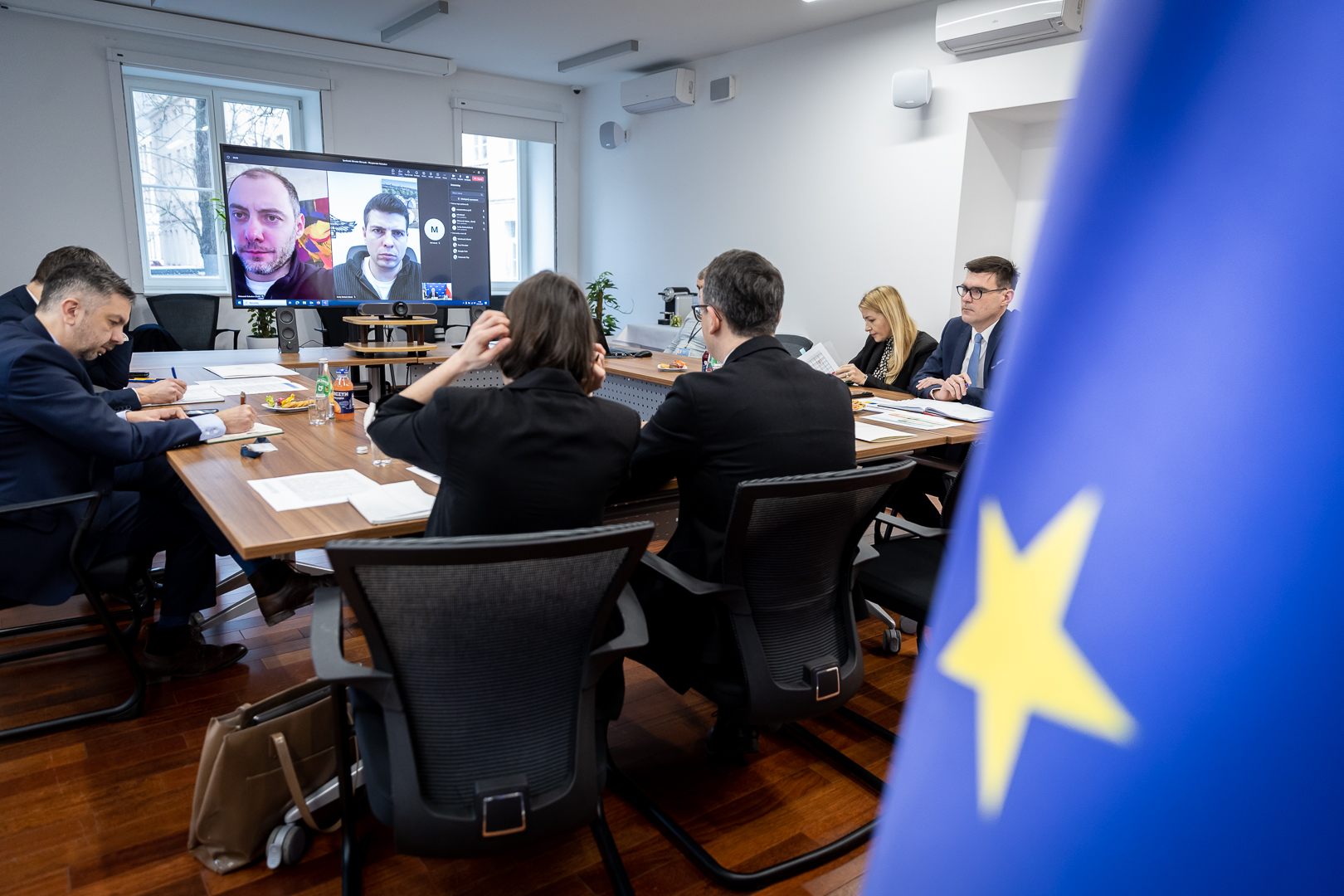 Wideokonferencja ministra infrastruktury Dariusza Klimczaka z wicepremierem Ukrainy Oleksandrem Kubrakovem