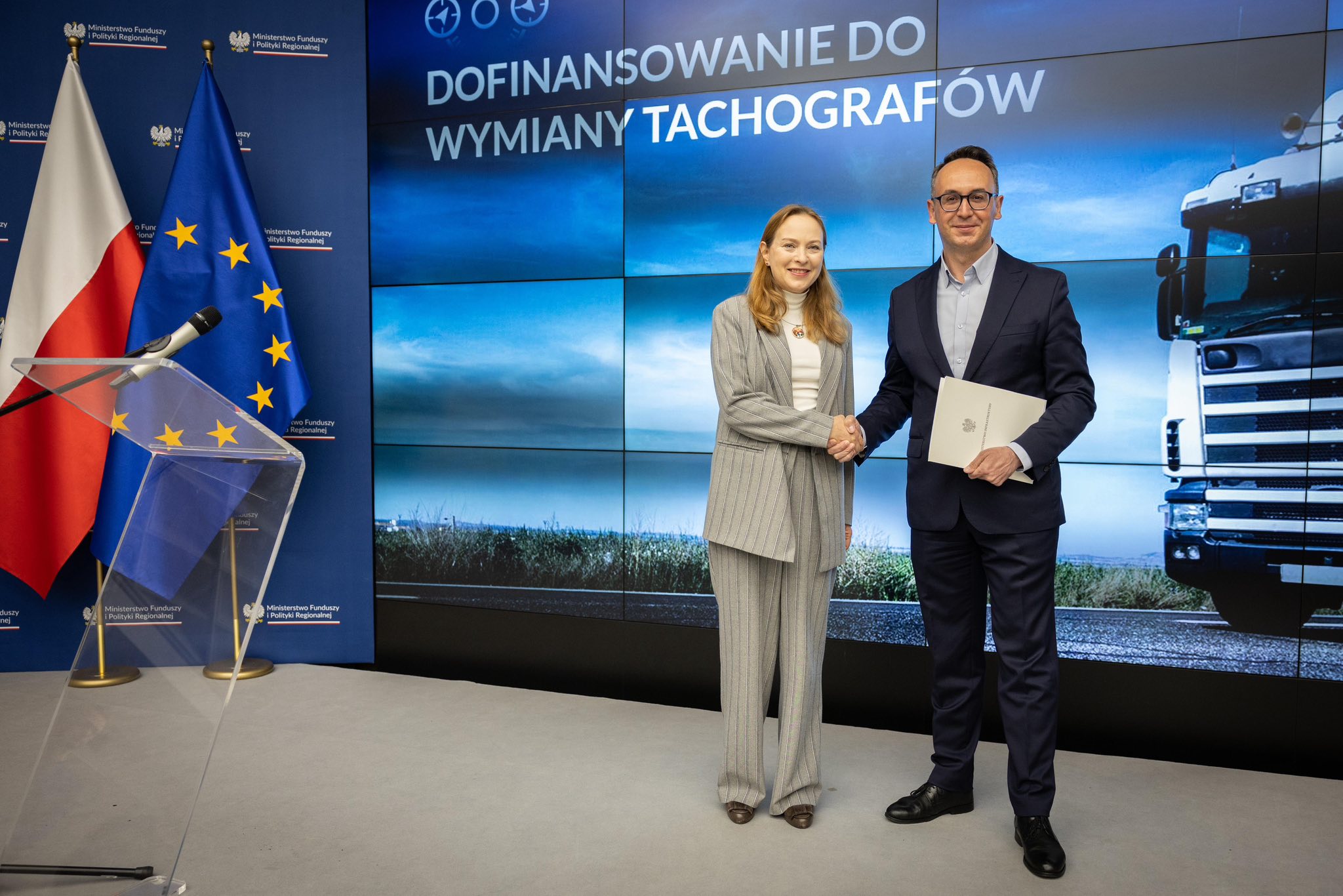 Jest też wstępne uzgodnienie z instytucją, która przeprowadzi w trybie konkursowym możliwość dofinansowania. Systemem wsparcia będą objęci ci, którzy wymienili tachografy. Konkurs będzie bowiem polegał na częściowym refinansowaniu kosztów wymiany i instalacji tachografu nowej generacji. Pieniądze te realnie pomogą przedsiębiorcom, przyczyniając się do poprawy ich pozycji konkurencyjnej na rynku europejskim oraz wpłyną na podniesienie poziomu bezpieczeństwa przewozów towarowych.