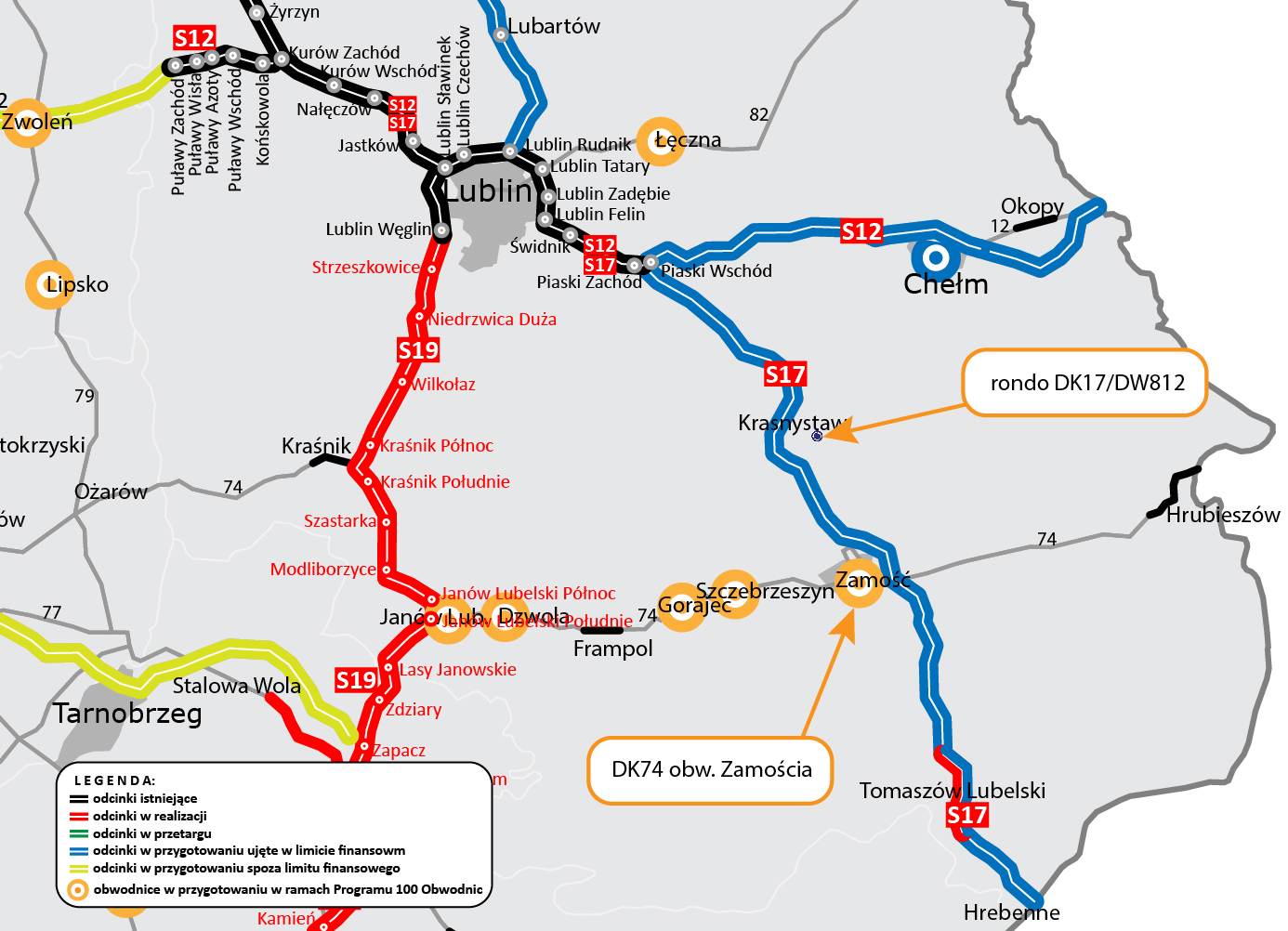 Obwodnica Zamościa to nowe zadanie, dla którego proces inwestycyjny dopiero się rozpoczyna. Pierwszym etapem będzie opracowanie dokumentacji w zakresie studium korytarzowego, a kolejnym opracowanie studium techniczno-ekonomiczno-środowiskowego wraz z elementami koncepcji programowej oraz uzyskanie decyzji środowiskowej. Oznacza to, że dokładny przebieg drogi nie został jeszcze ustalony.
