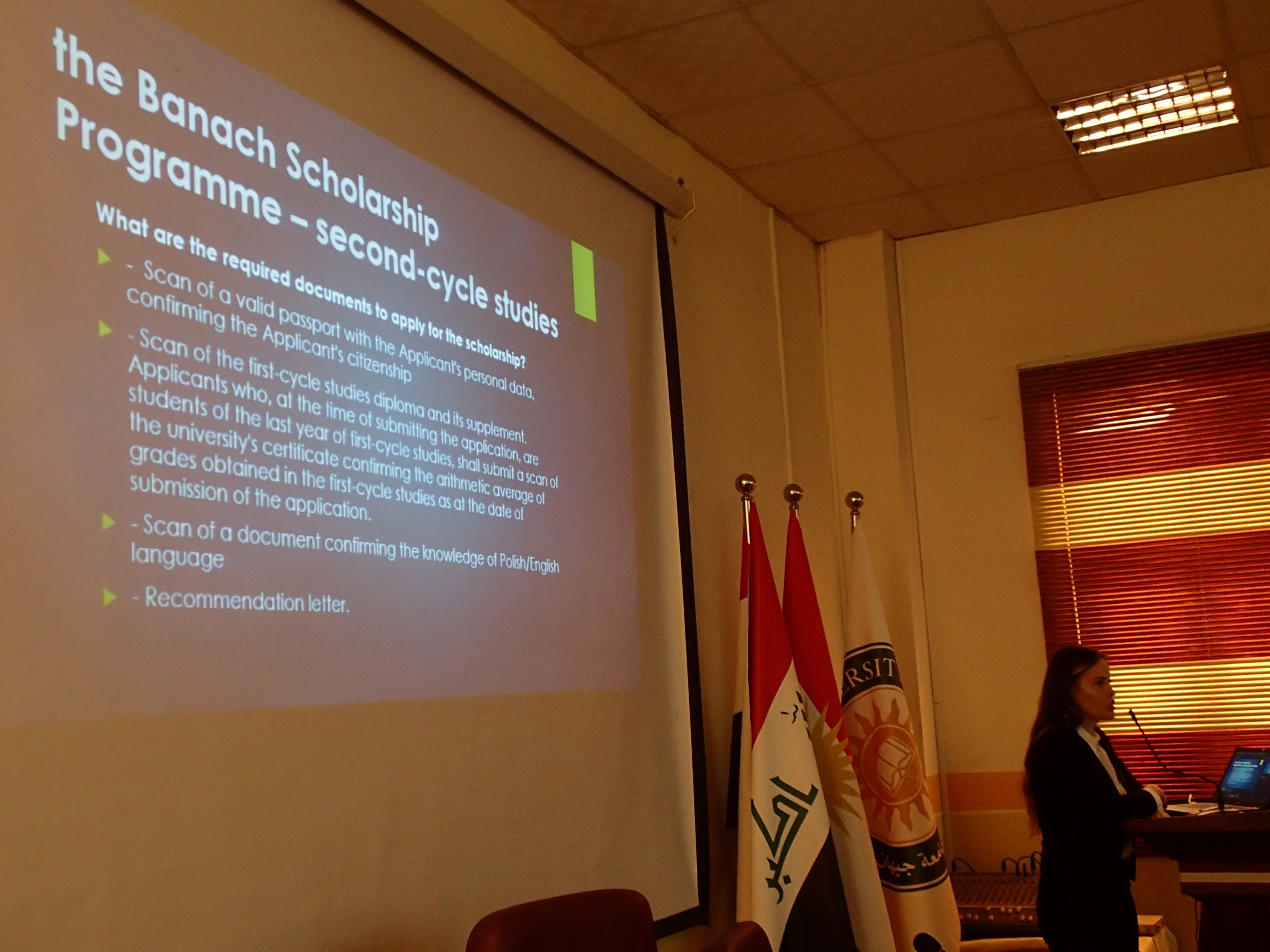A. Czarnecka spotkała się na poczatku swojego pobytu w Regionie Irackiego Kurdystanu z rektorem Uniwersytetu Cihan w Irbilu, dr Amjadem Saberem al-Dalawim. Na terenie tej uczelni przeprowadziła również wymienione prezentacje - w dn. 24 i 29 bm. Wicekonsul Stanisław Guliński był obecny podczas drugiej z nich.