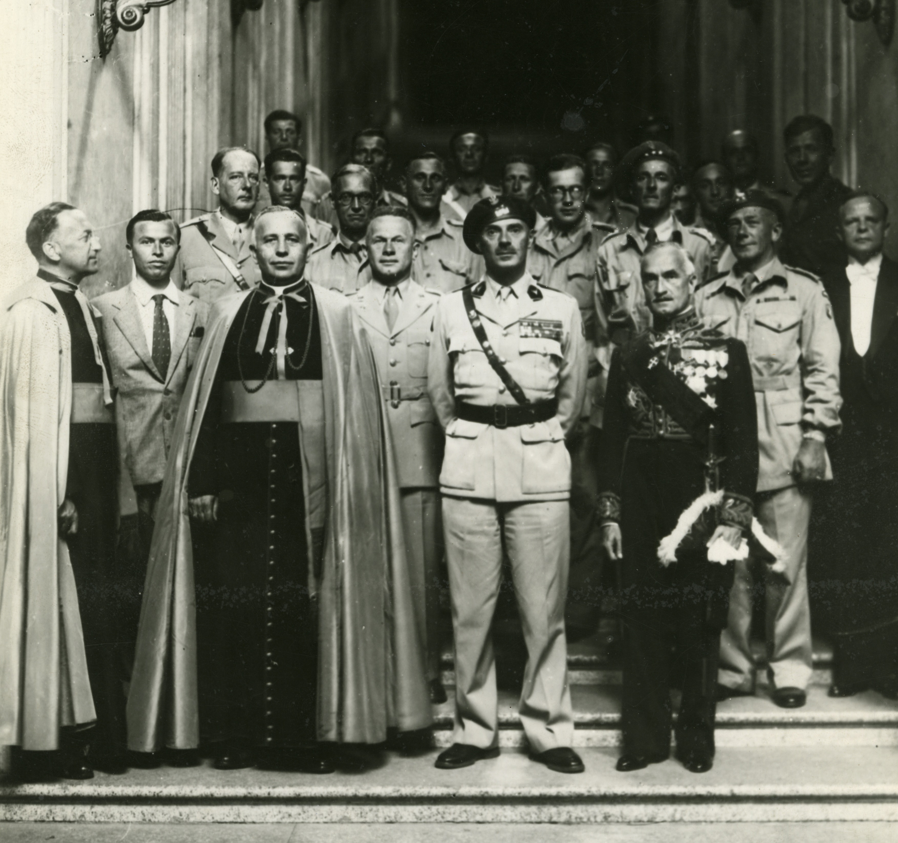 Wizyta dowództwa Armii Polskiej w Watykanie, 20 czerwca 1944 roku; w pierwszym rzędzie w środku, w mundurze, gen. Władysław Anders, obok niego po lewej gen. Michał Karaszewicz-Tokarzewski i biskup polowy Józef Gawlina, po prawej w mundurze dyplomatycznym amb. Kazimierz Papée.