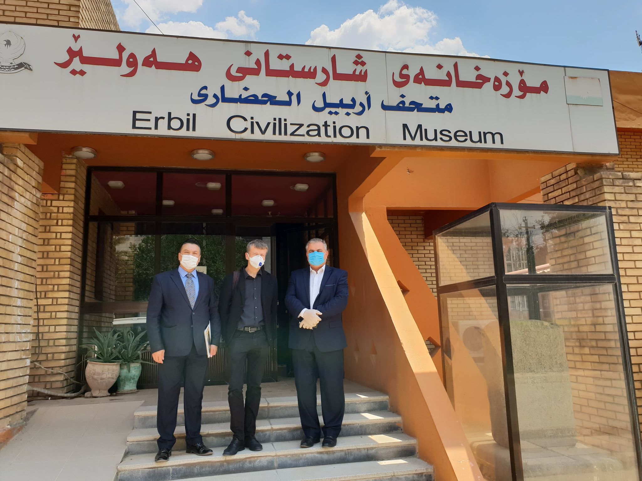 Tego samego dnia miała też miejsce wizyta i rozmowa z dyrektorem Biura ds. zabytków Irbilu, Naderem B. Mohammedem, w dużej mierze będąca kontynuacją tematyki muzealnej i archeologicznej podjętej podczas poprzedniego spotkania. Dzięki uprzejmości dyrektora mieliśmy okazję, wraz z p. Grgiesem, zwiedzić niewielką lecz profesjonalnie urządzoną ekspozycję archeologiczną w sąsiadującym z biurem Muzeum Cywilizacji Irbilu. W ramach restrykcji związanych z rozprzestrzenianiem się pandemii koronawirusa, jest ono bowiem aktualnie zmaknięte dla publiczności.