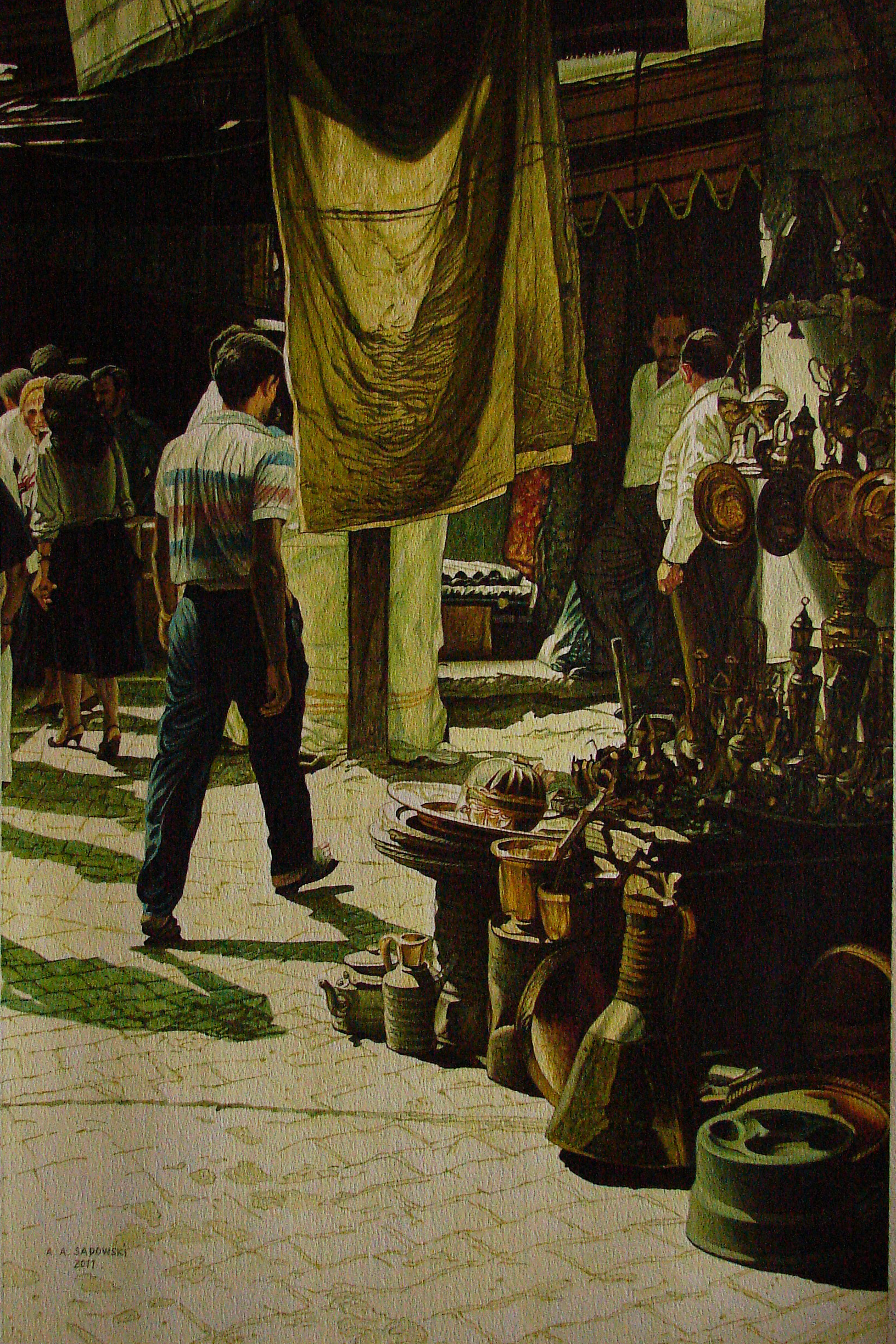 A.A.Sadowski mainly created acrylic & oil works on canvas and paper. As his son explains, he was a forerunner of photorealism in Poland (the genre originating in the 60's in USA), a very consequent and prolific one. Photorealism is a genre of painting (or other graphic media), in which an artist examines a photograph and then tries to reproduce the image as realistically as possible in another medium.