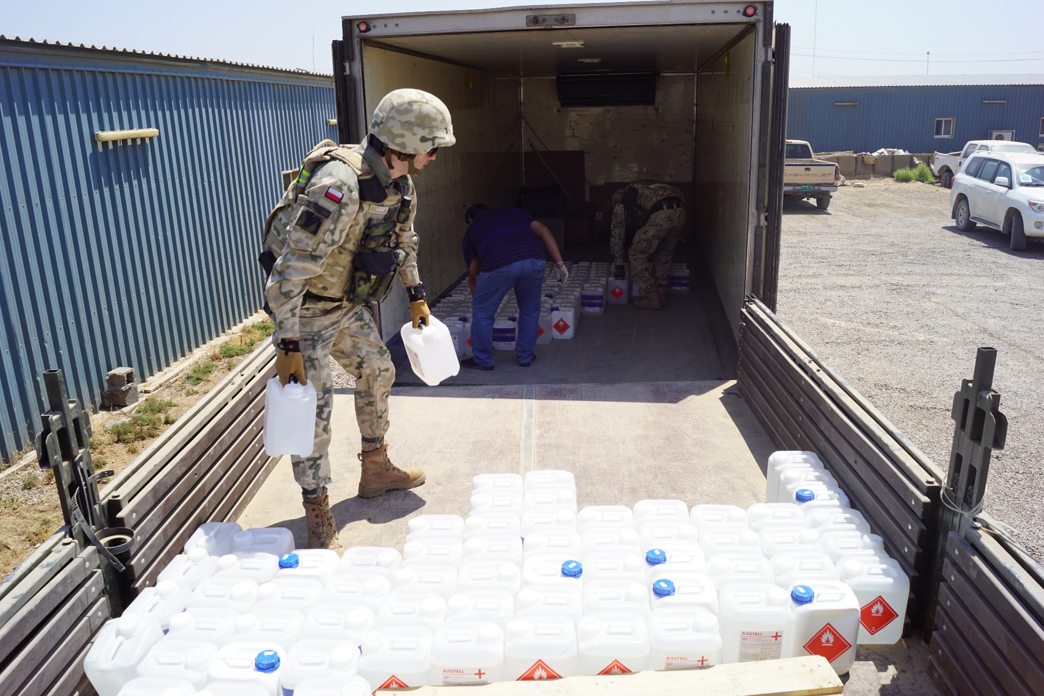 On the 5th of July Polish contingent in the NATO Mission Iraq (NMI) coordinated the delivery of disinfectant liquid donated to Iraq by the President of the Republic of Poland.
