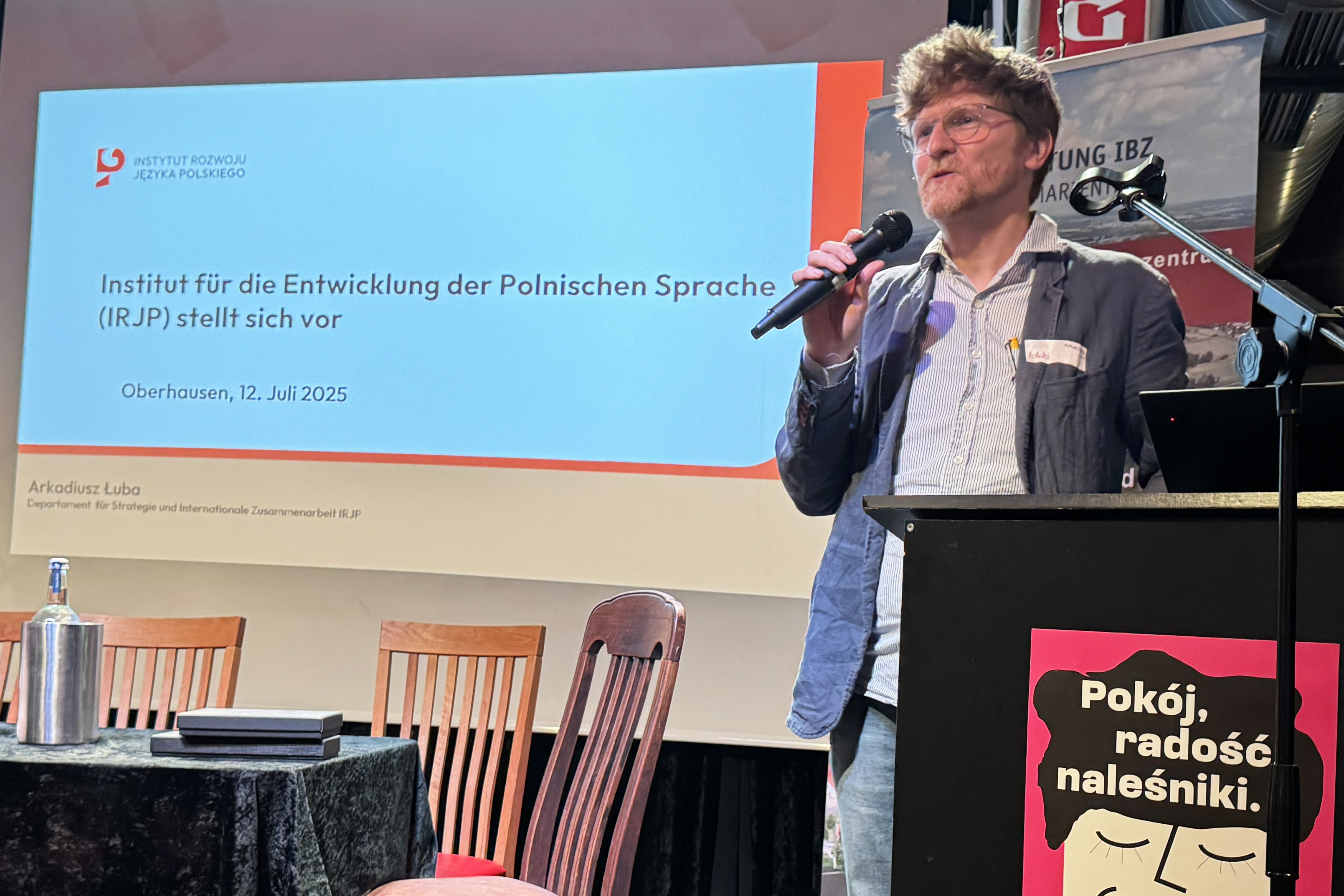 Instytut Rozwoju Języka Polskiego reprezentował starszy specjalista w Departamencie Strategii i Współpracy Międzynarodowej, Arkadiusz Łuba. Gościom niemieckojęzycznym przedstawił Instytut w ich języku, opowiedział o strategicznych kierunkach działalności Instytutu oraz o dotacjach celowych realizowanych konkursowo, o zakresach konkursów, a także o sztandarowym produkcie Instytutu, mającym na celu profesjonalizację i ujednolicenie standardów w nauce języka polskiego poza granicami Polski – Ramach programowych.