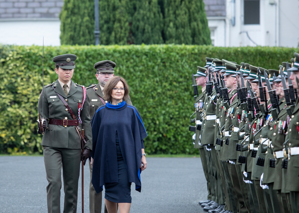 Po ceremonii Ambasador Sochańska przeprowadziła inspekcję kompanii honorowej 1. Kompanii Zmechanizowanej Sił Obronnych Irlandii.
