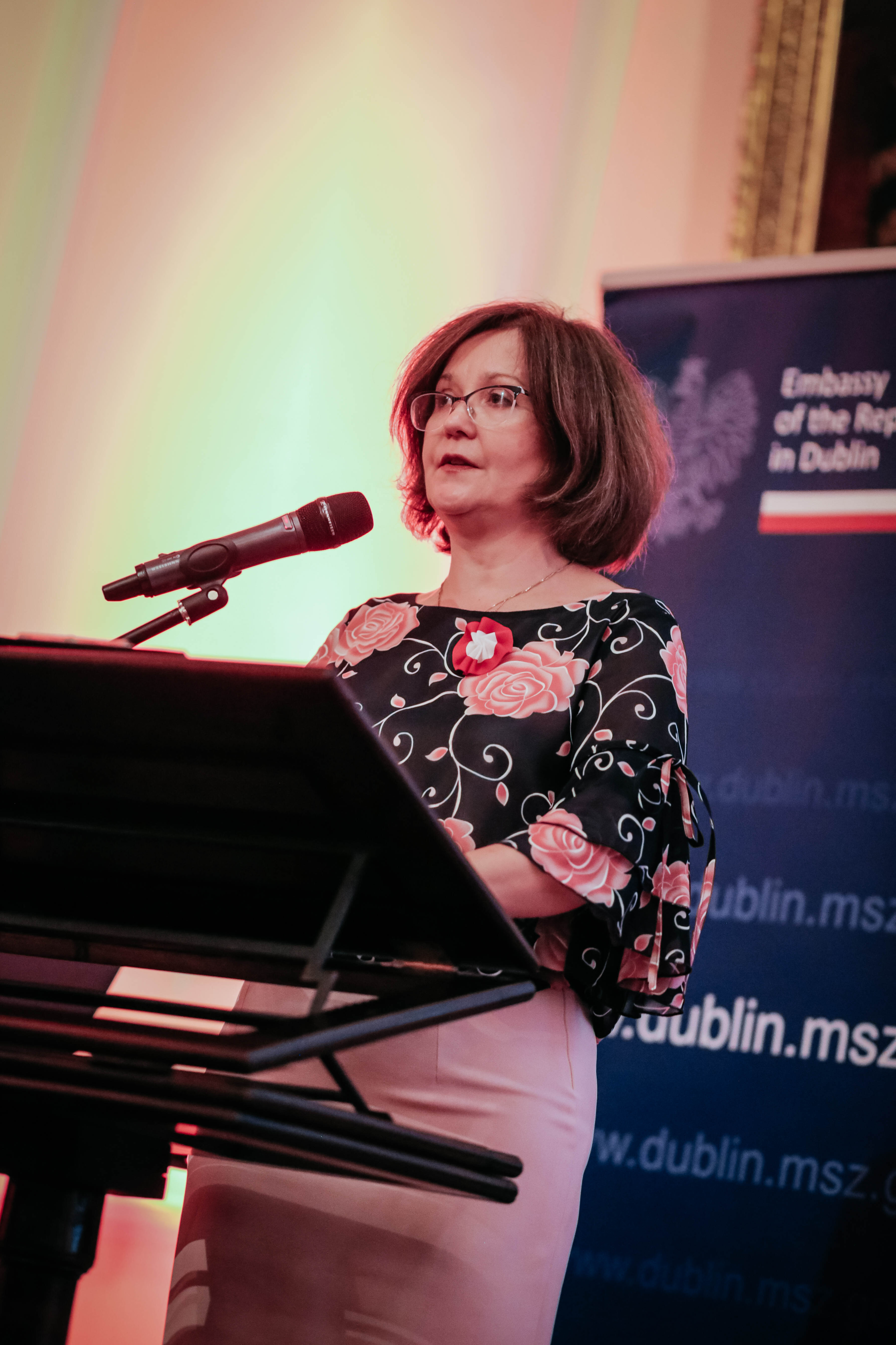 Część oficjalna rozpoczęła się odegraniem hymnów państwowych oraz przemówieniem Ambasadora RP, Anny Sochańskiej, w którym poruszona została historia Polski od rozbiorów po obalenie komunizmu oraz dzisiejsze wyzwania stojące przed Polską w Europie. Następnie został wręczony Złoty Krzyż Zasługi przyznany przez Prezydenta RP Pani Marcie Szutkowskiej-Kiszkiel w uznaniu wieloletniej pracy na rzecz Polonii w Irlandii, w szczególności w obszarze działalności edukacyjnej (współzałożycielka i wieloletnia prezes Polskiej Macierzy Szkolnej w Irlandii).
