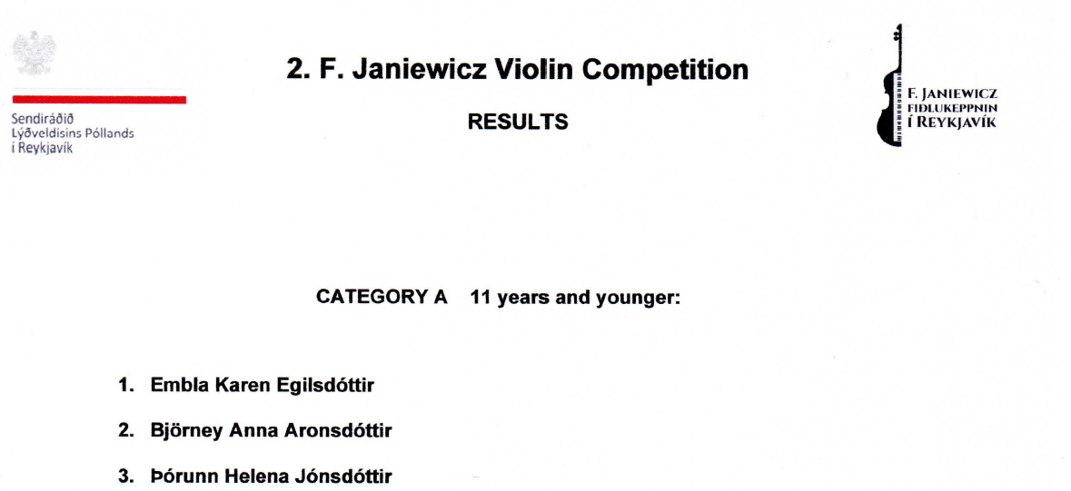 Þann 5.-8. desember 2020, tók stað í annað skipti Tónlistakeppnin F. Janiewicz á vegum pólska sendiráðsins í Reykjavík í samvinnu við tónlistafélagið F. Chopin á Íslandi.