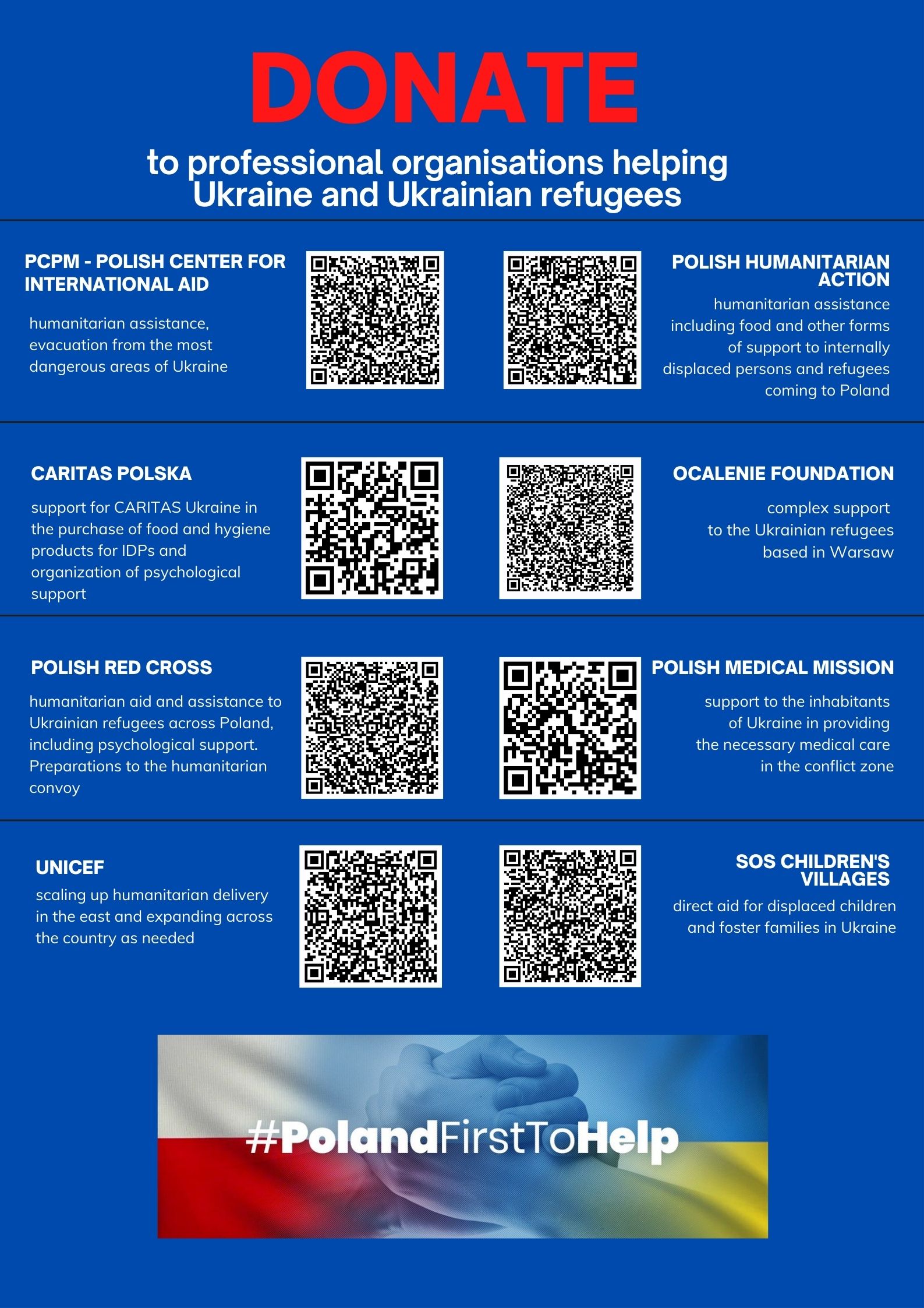 If you would like to support organizations that are helping Ukraine and Ukrainians, please consider donating to the Polish and international humanitarian aid organizations listed below. Donations can be made from non-Polish/non-złoty bank accounts.