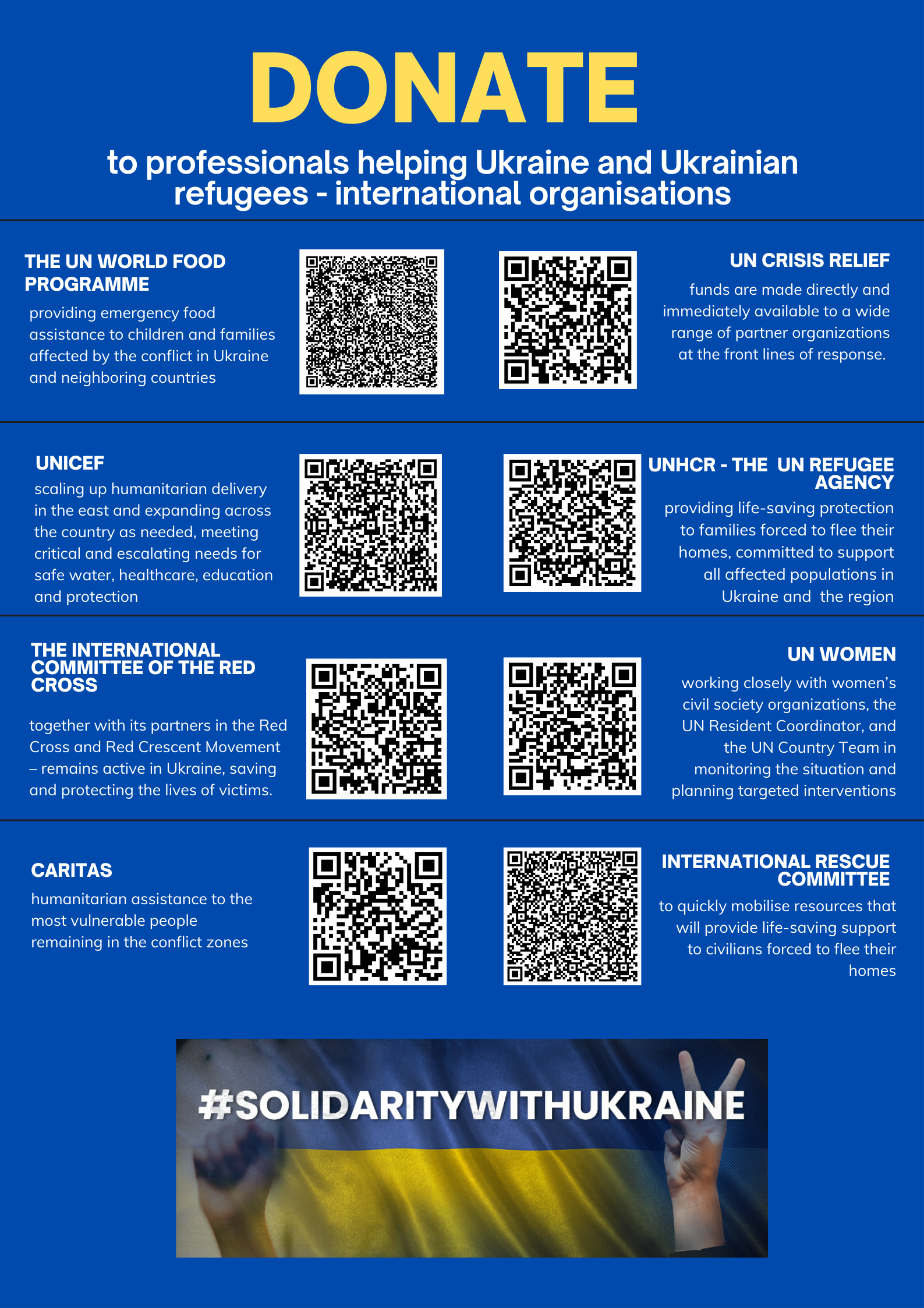 In the attachment, please find the banners with QR codes that will lead you to the links listed above. Feel free to share with anybody willing to help and donate to these organisations.