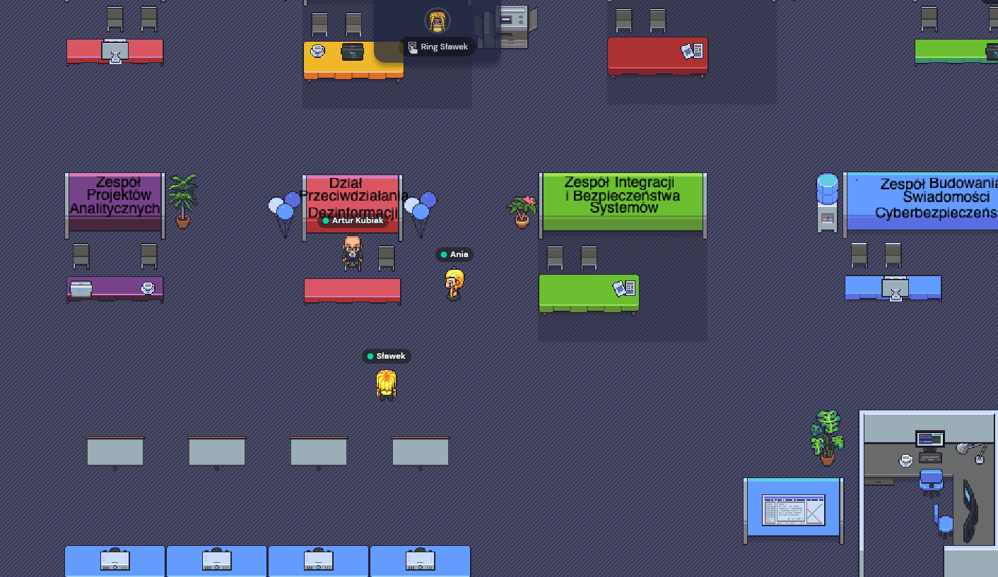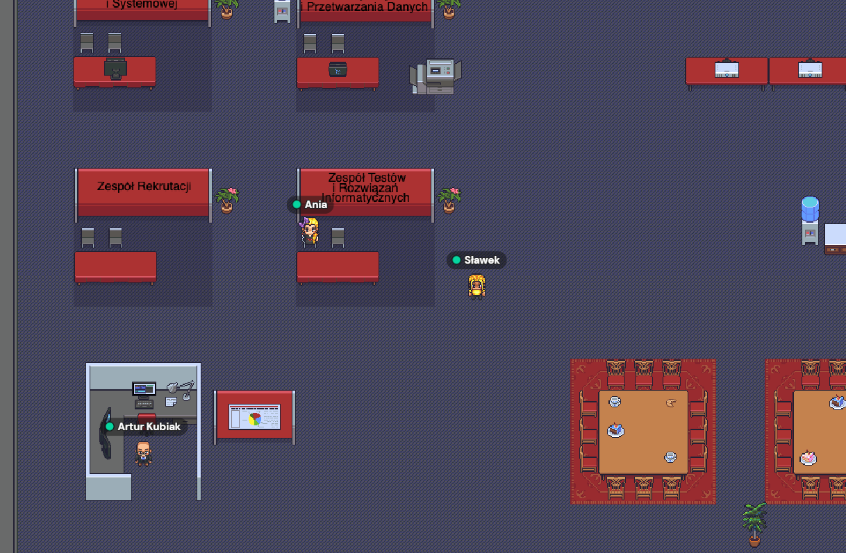 Tegoroczna edycja targów pracy "IT dla kraju" odbędzie się z użyciem wirtualnej platformy o nazwie gather.town. Za jej pomocą staraliśmy się odtworzyć topografię tradycyjnych targów, z tą różnicą, że aby wziąć udział w wydarzeniu, "nie trzeba wstawać z krzesła". Co prawda wolelibyśmy zobaczyć się z Wami na żywo, ale tego typu forma targów pozwala na udział z dowolnego miejsca w kraju.
