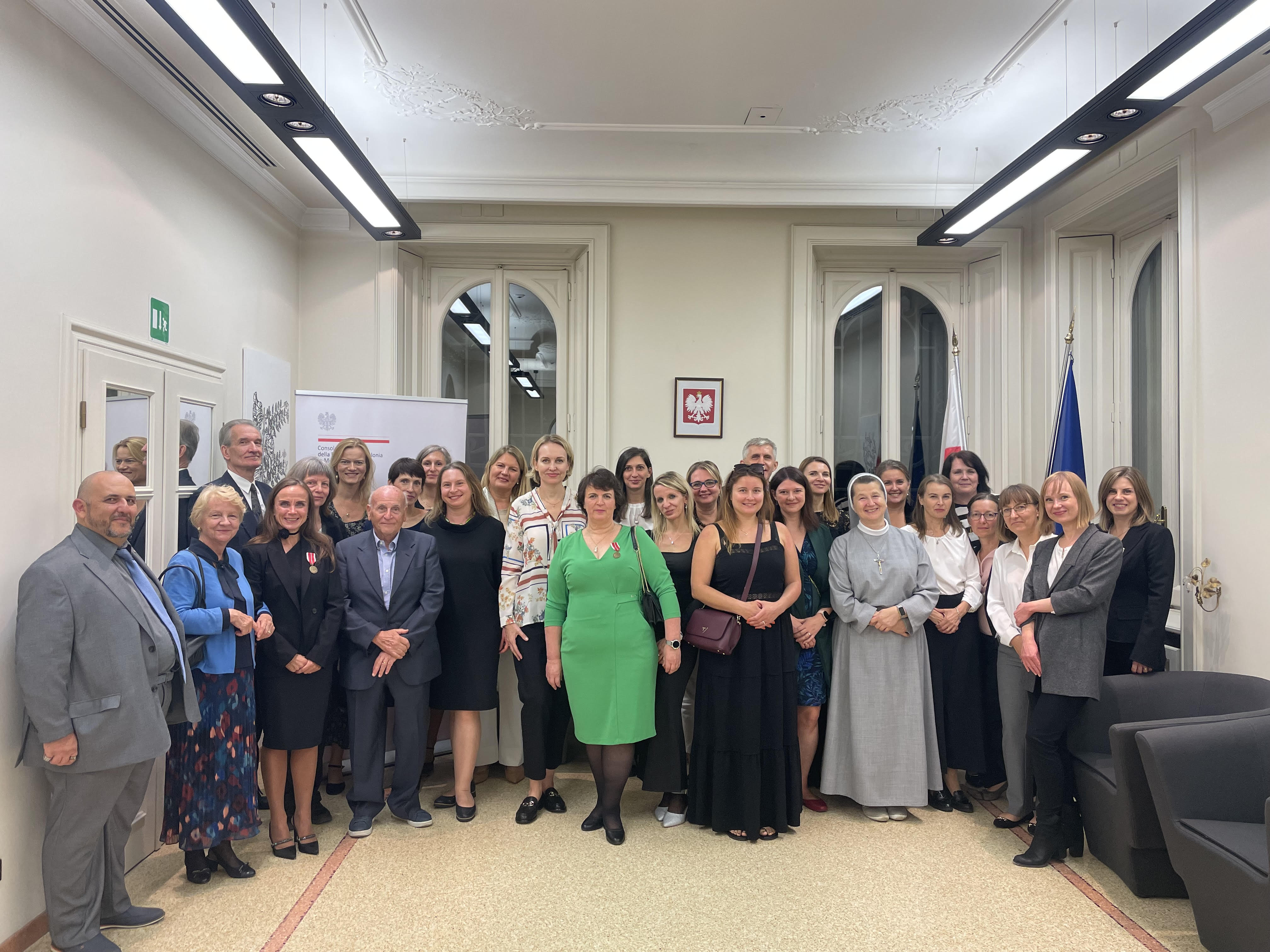 Durante la cerimonia presieduta dalla preside Ewa Gleń tre insegnanti sono state decorate con la Medaglia della Commissione della Formazione Nazionale dalla viceconsole Ewa Adamczyk e dal prof. Kalbarczyk che inoltre ha presentato la lettera di congratulazioni della Ministra dell’Istruzione pubblica Barbara Nowacka. La parte artistica della cerimonia è stata costituita da uno spettacolo dedicato al patrono della scuola e dal concerto da camera eseguito dagli alunni.