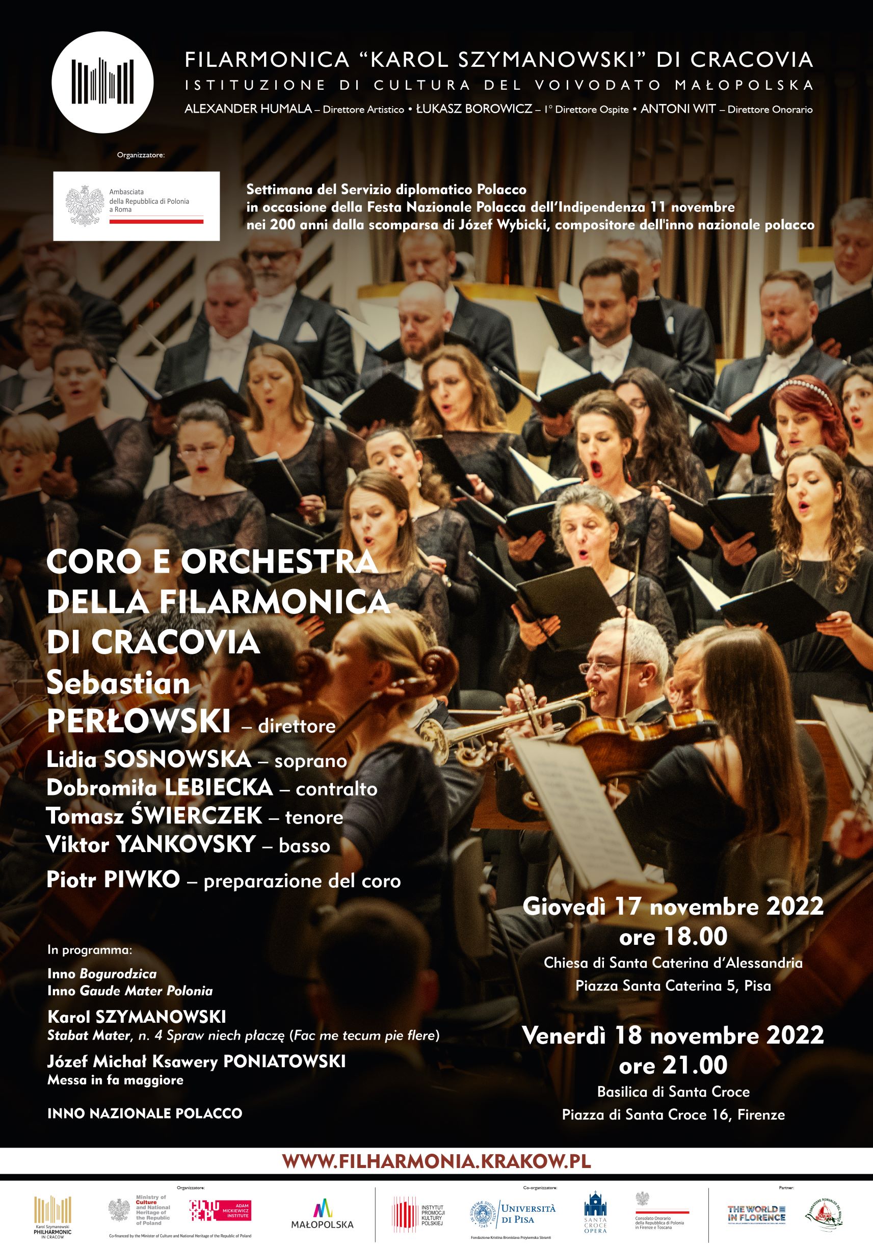 Due le date della tournée toscana del coro e orchestra della Filarmonica di Cracovoa diretta dal maestro Sebastian Perłowski:
