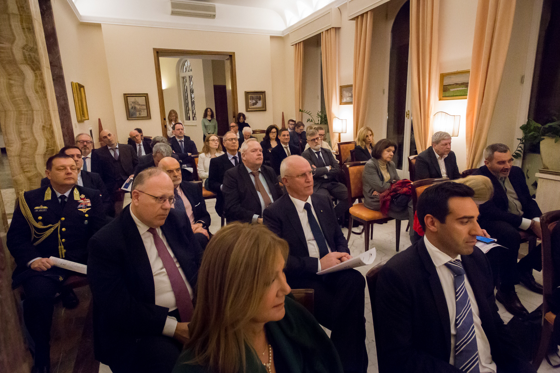 Al dibattito hanno partecipato la direttrice dell'Aspen Institute Marta Dassù, il presidente dell'associazione Diplomatia Giovanni Castellaneta e l'ambasciatore danese in Italia, ex ambasciatore a Washington Peter Taksøe-Jensen. La conversazione è stata moderata dal giornalista RAI Mario De Pizzo. Tra i partecipanti c'erano i rappresentanti del corpo diplomatico, dei think tank e media, i rappresentanti di aziende come Leonardo nonché membri di Diplomatia.