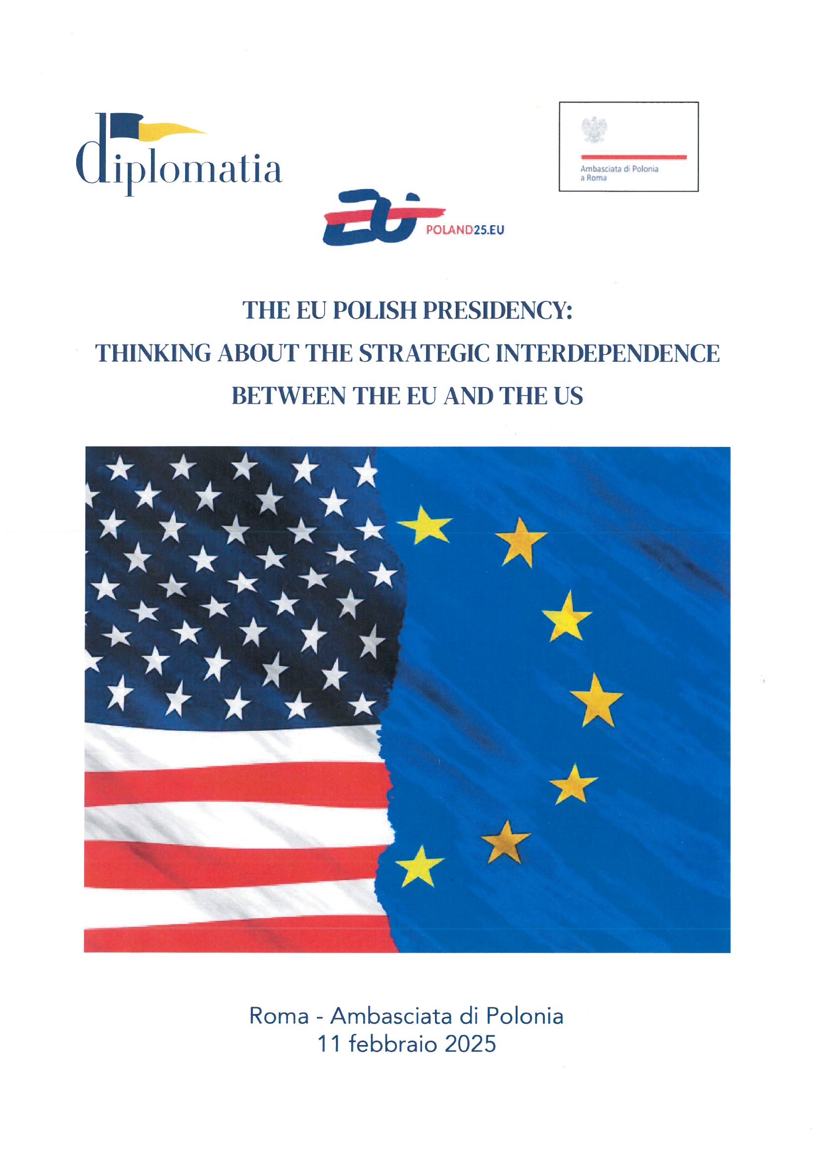 Interdipendenza strategica tra Unione Europea e Stati Uniti: questo è stato il tema del dibattito svoltosi l'11 febbraio all'Ambasciata della Repubblica di Polonia a Roma in occasione della presidenza polacca del Consiglio dell'Unione Europea. L'evento è stato organizzato in collaborazione con Diplomatia.
