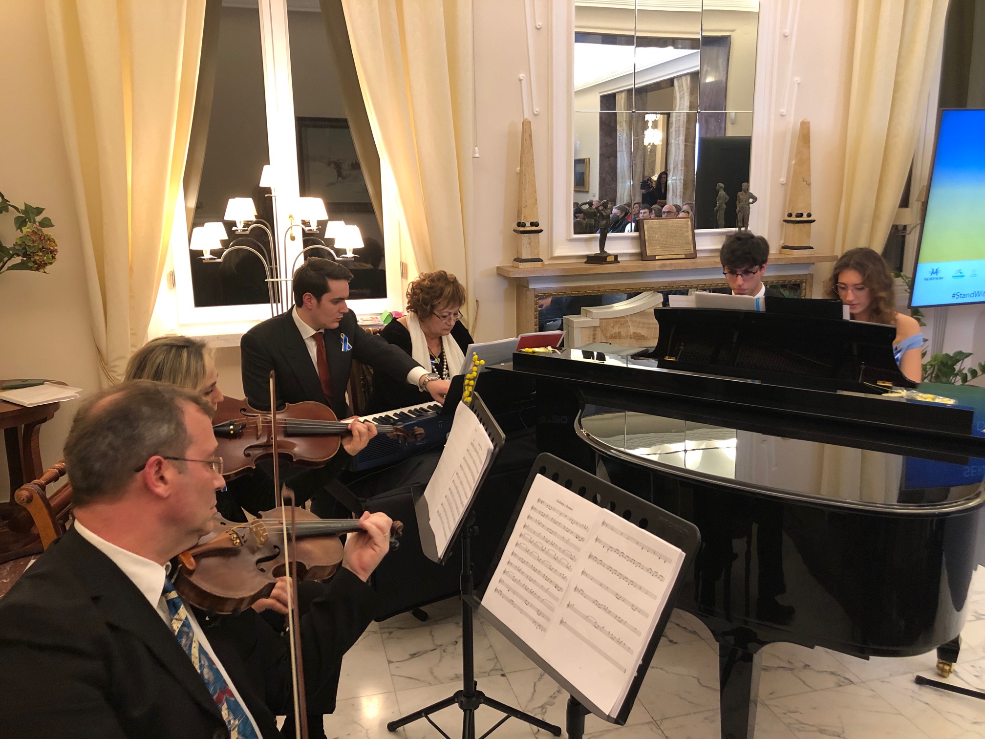 Raccolta fondi per l'Ucraina durante la serata di solidarietà e di sostegno alle Donne Ucraine nell'Ambasciata Polacca a Roma. Musica a cura dell’Ensemble Project Music Mix con le più celebre colonne sonore del cinema italiano e progetti di Żanna Moryson come messaggio di pace e fraterna convivenza.