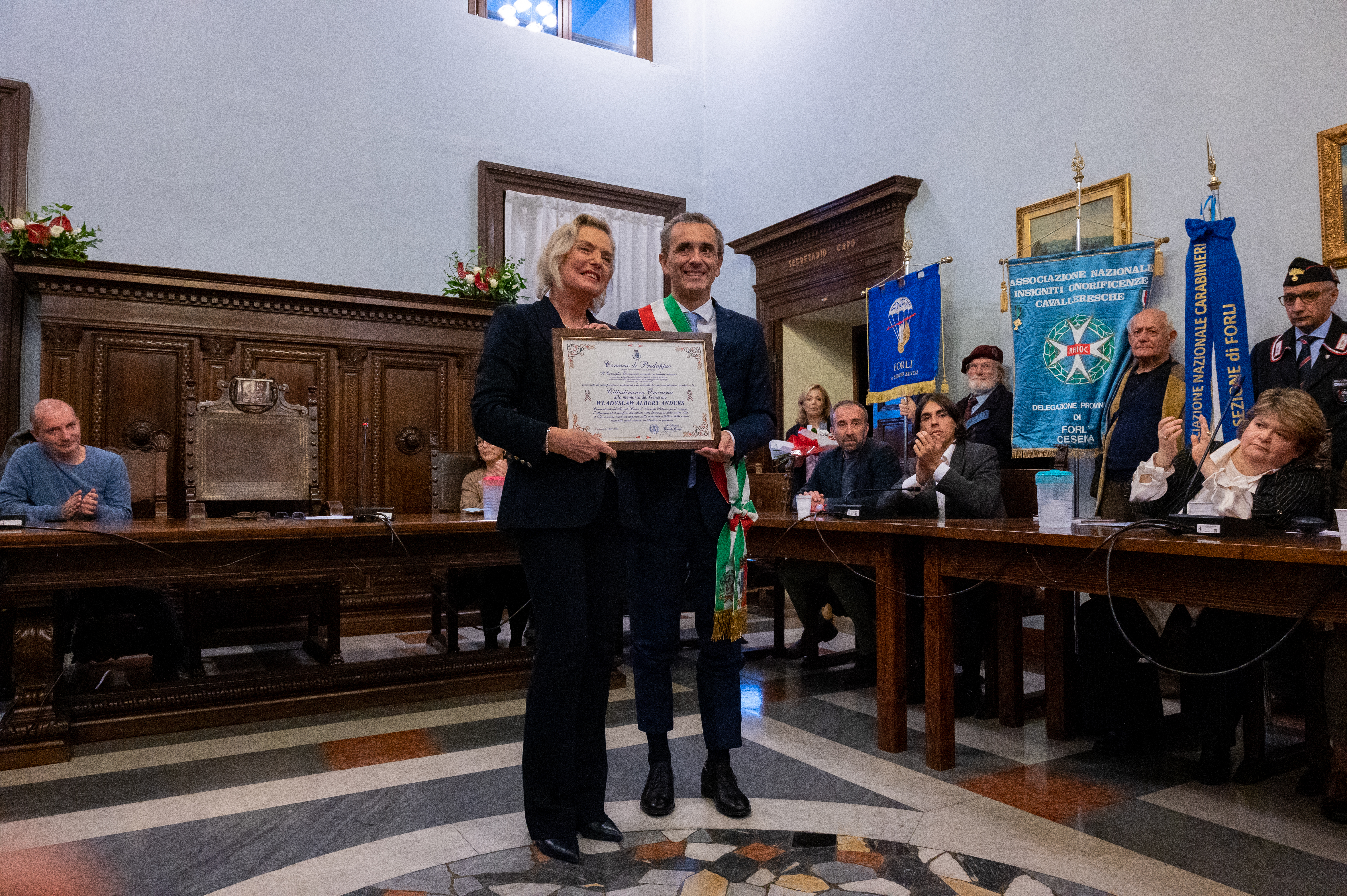 Dopo l’inaugurazione della lapide si è svolta la seduta straordinaria del Consiglio Comunale che ha conferito con un voto d’unanimità la cittadinanza di Predappio al gen. Władysław Anders, comandante del 2° Corpo d’Armata Polacco. All’atto è stato presentato da parte degli storici Enzo Casadio e Marco Dalmonte un documentario e una mostra di fotografie relative alla liberazione di Predappio dai soldati polacchi. appio dai soldati polacchi.