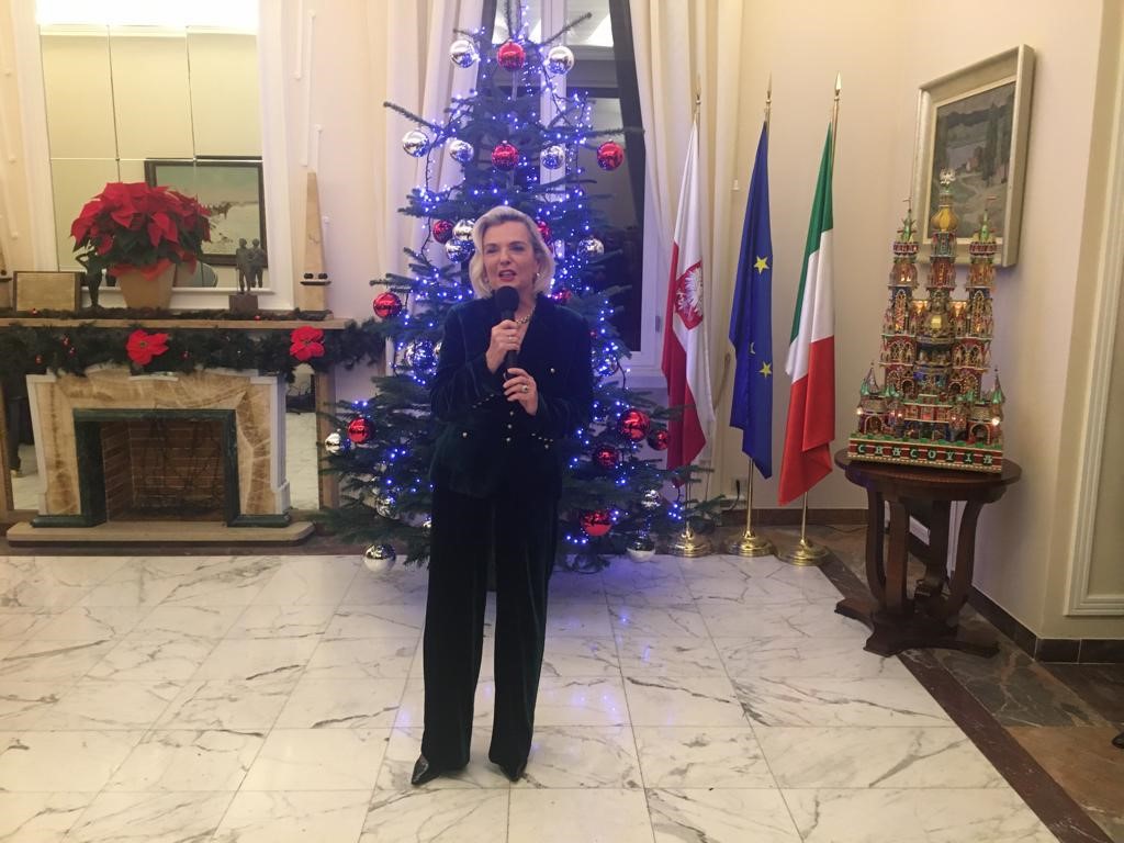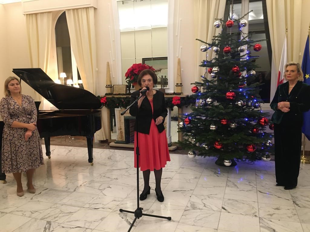 La padrona di casa, Ambasciatore Anna Maria Anders unitamente al Console Agata Ibek-Wojtasik, hanno espresso parole di sincero ringraziamento per il prezioso lavoro svolto nel 2022 dalla Comunità Polacca, formulando contestualmente i migliori Auguri di Sereno Natale e Felice 2023. Come vuole la tradizone polacca, non potevano mancare la condivisione delll`Ostia e i canti natalizi.