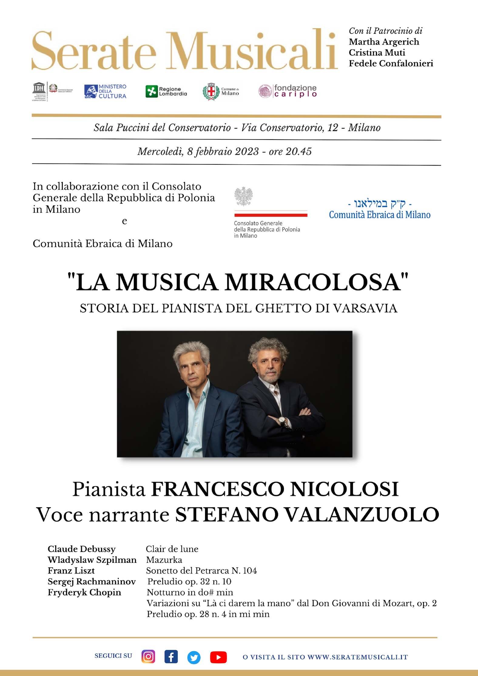 Abbiamo il piacere di invitarvi l’8 febbraio alle 20:45 al Conservatorio di Milano alla serata musicale dedicata a Wladysław Szpilman, compositore e pianista polacco di origine ebraica.