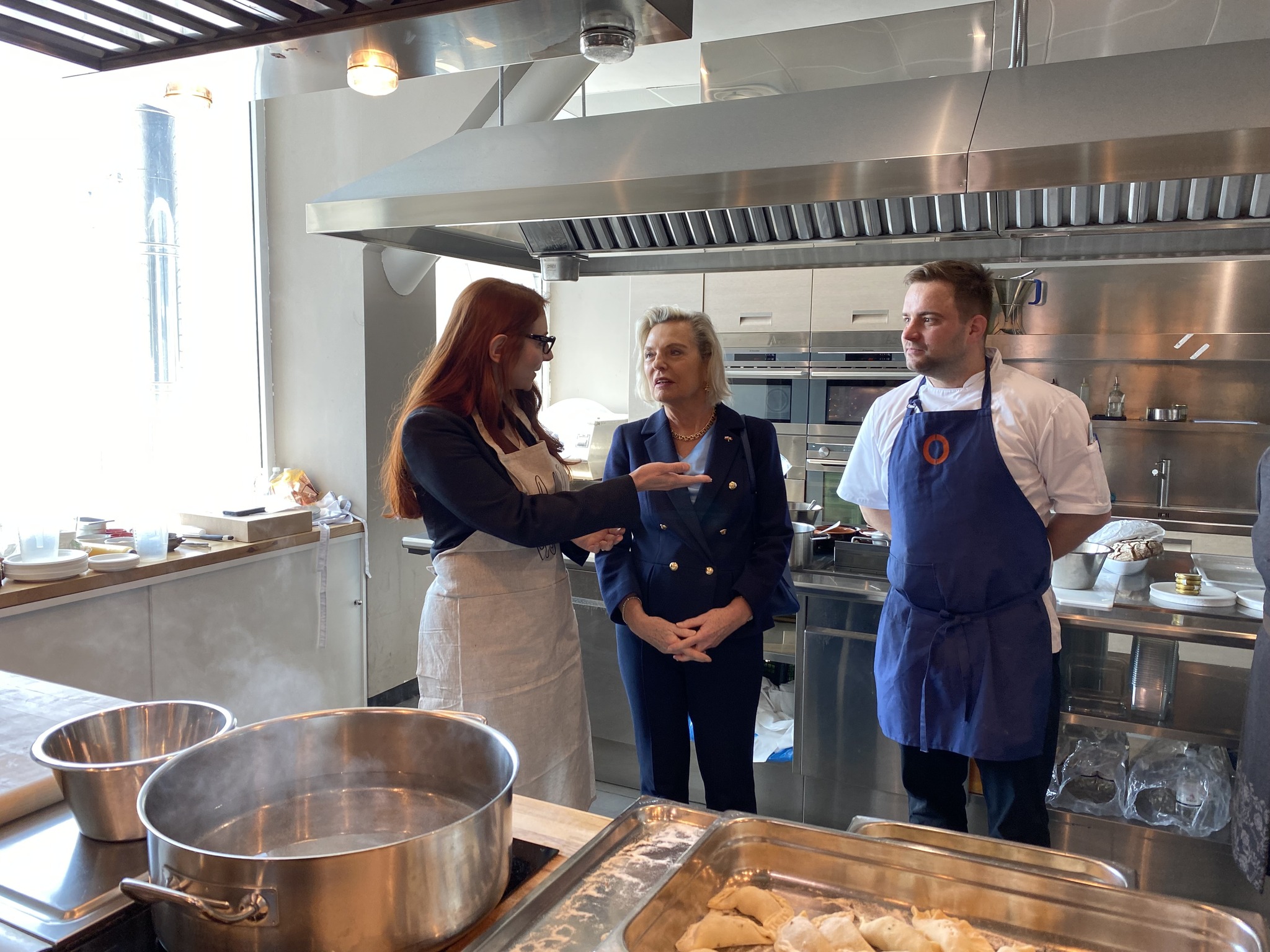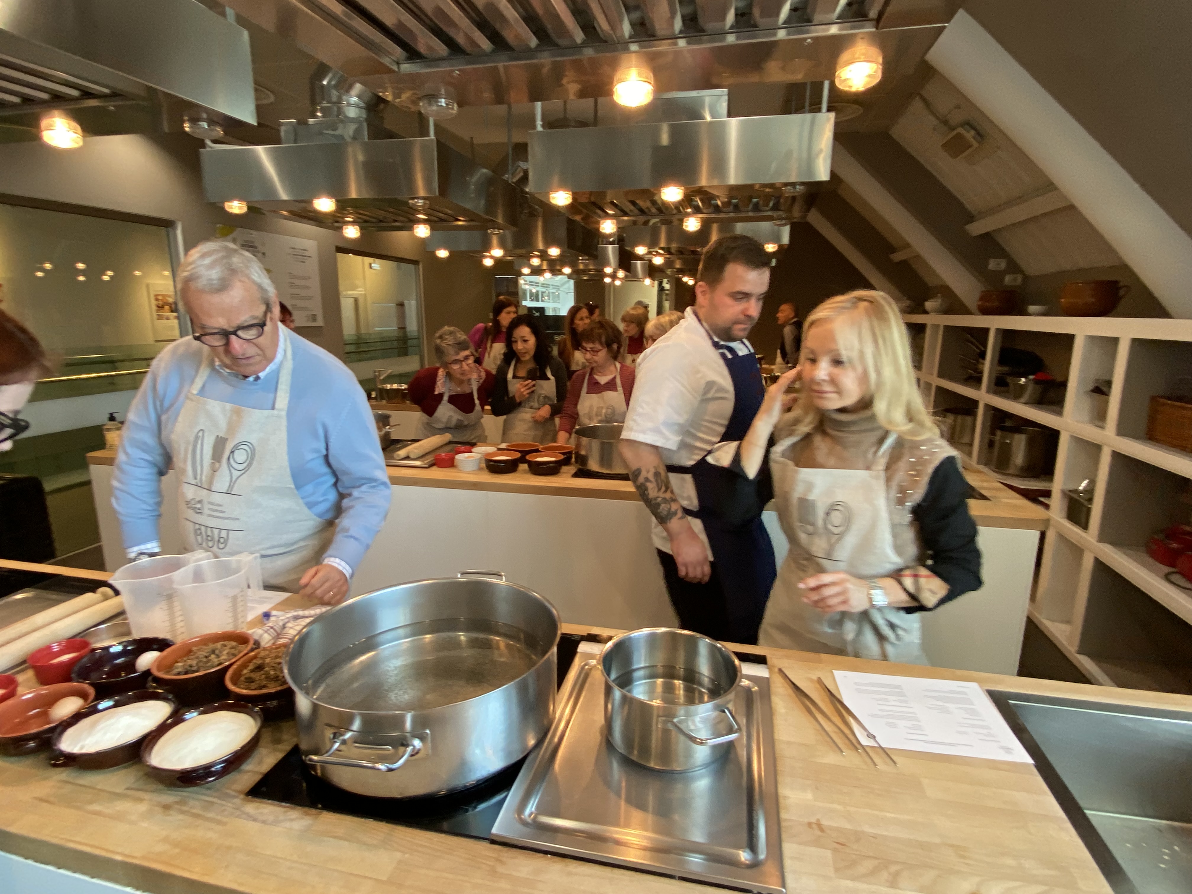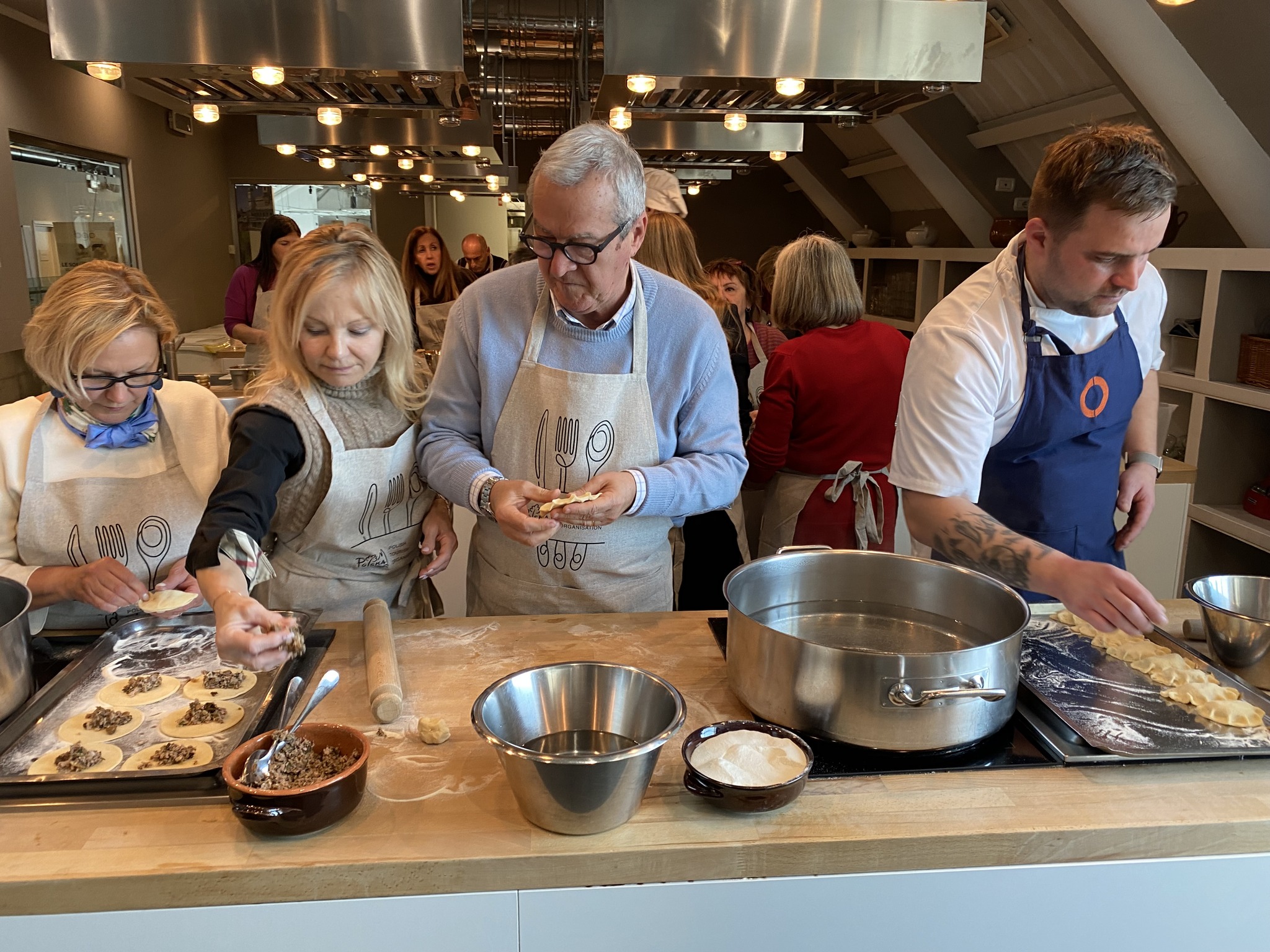 I partecipanti al workshop si sono cimentati nella preparazione di piatti della tradizione polacca rivistati in chiave moderna. A guidarli lo chef Sebastian Maliszewski che ha spiegato i segreti delle varie pietanze, tra cui gli immancabili pierogi (simili ai ravioli), qui preparati con un delizioso ripieno con l'anatra e funghi porcini.