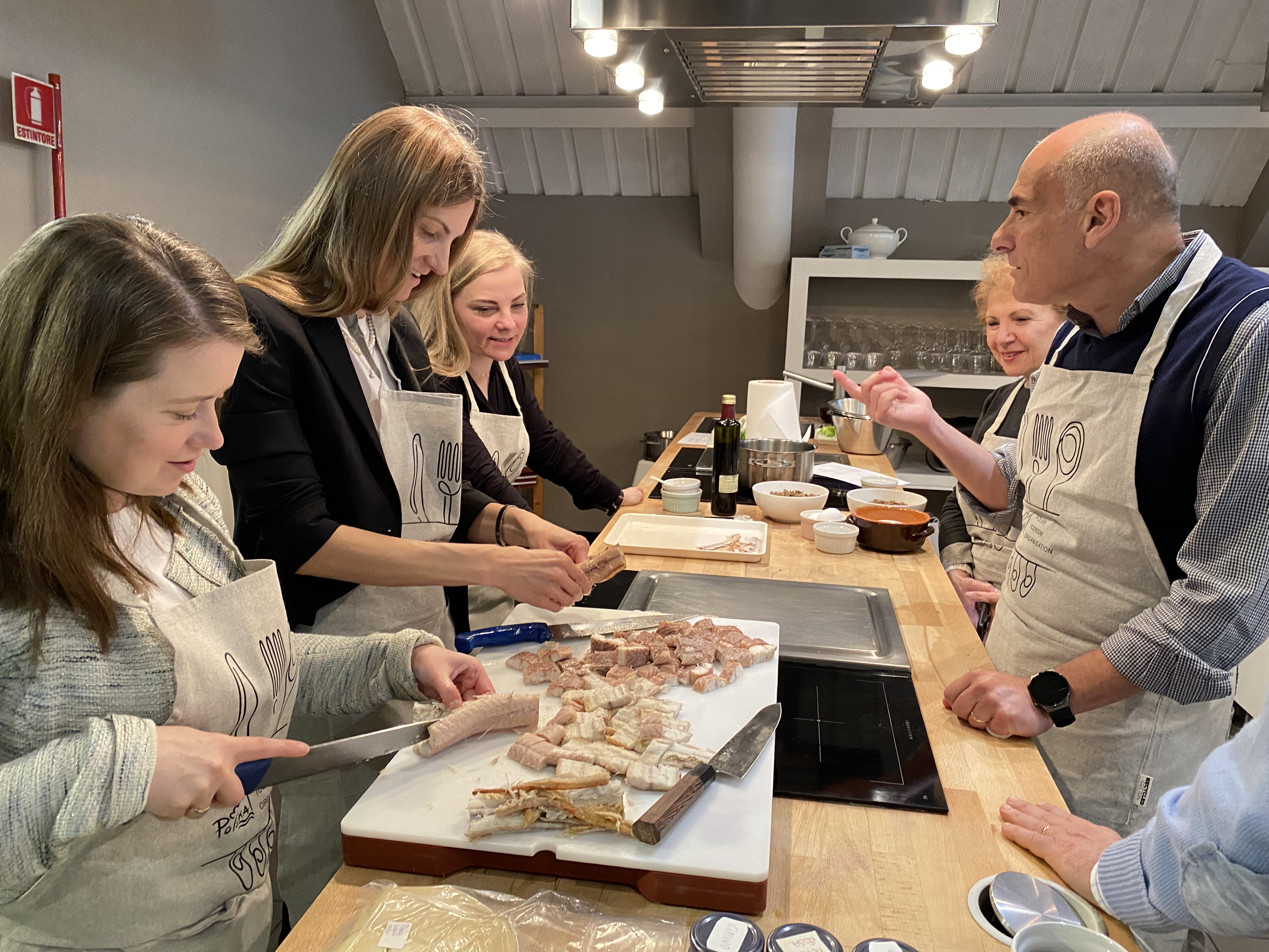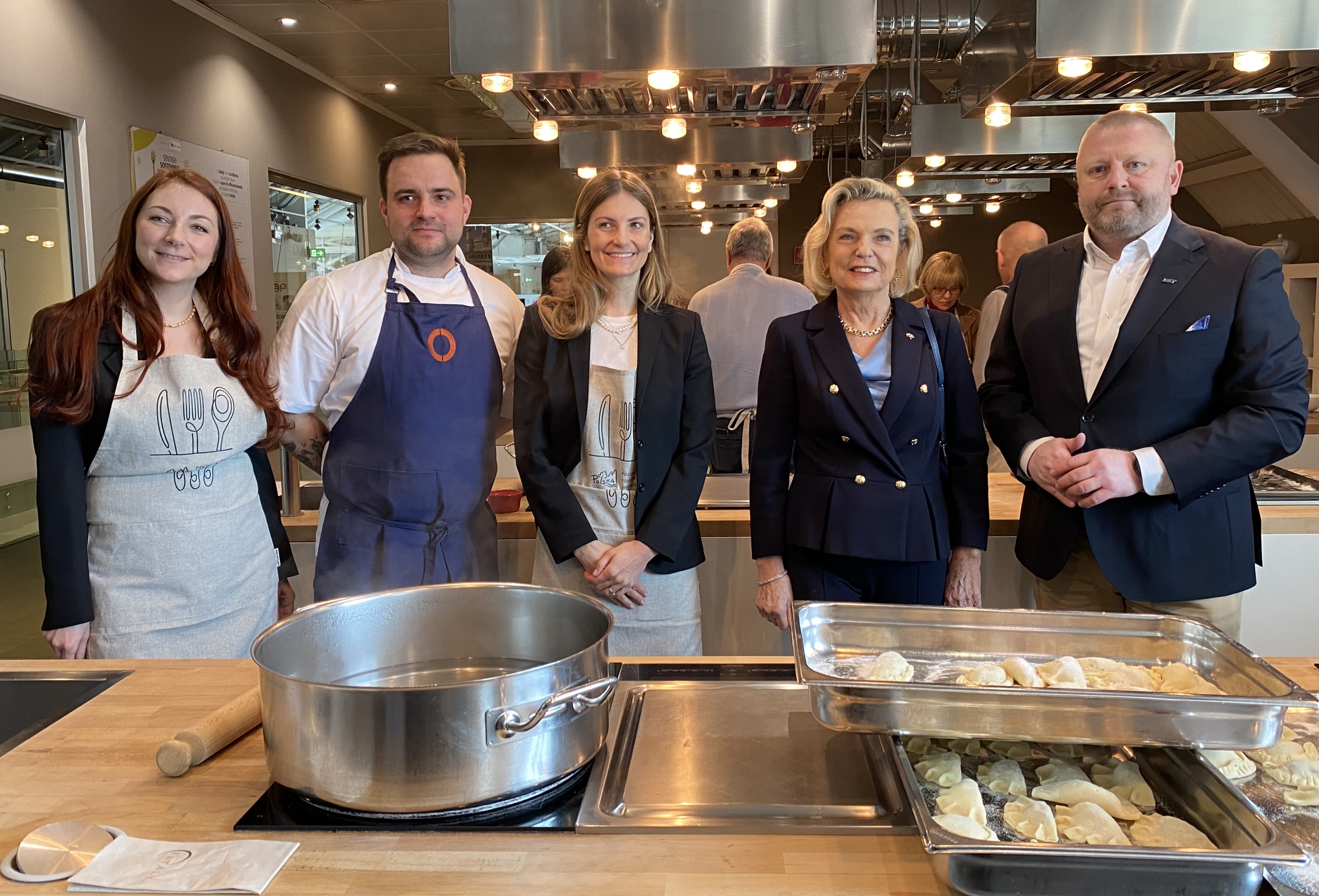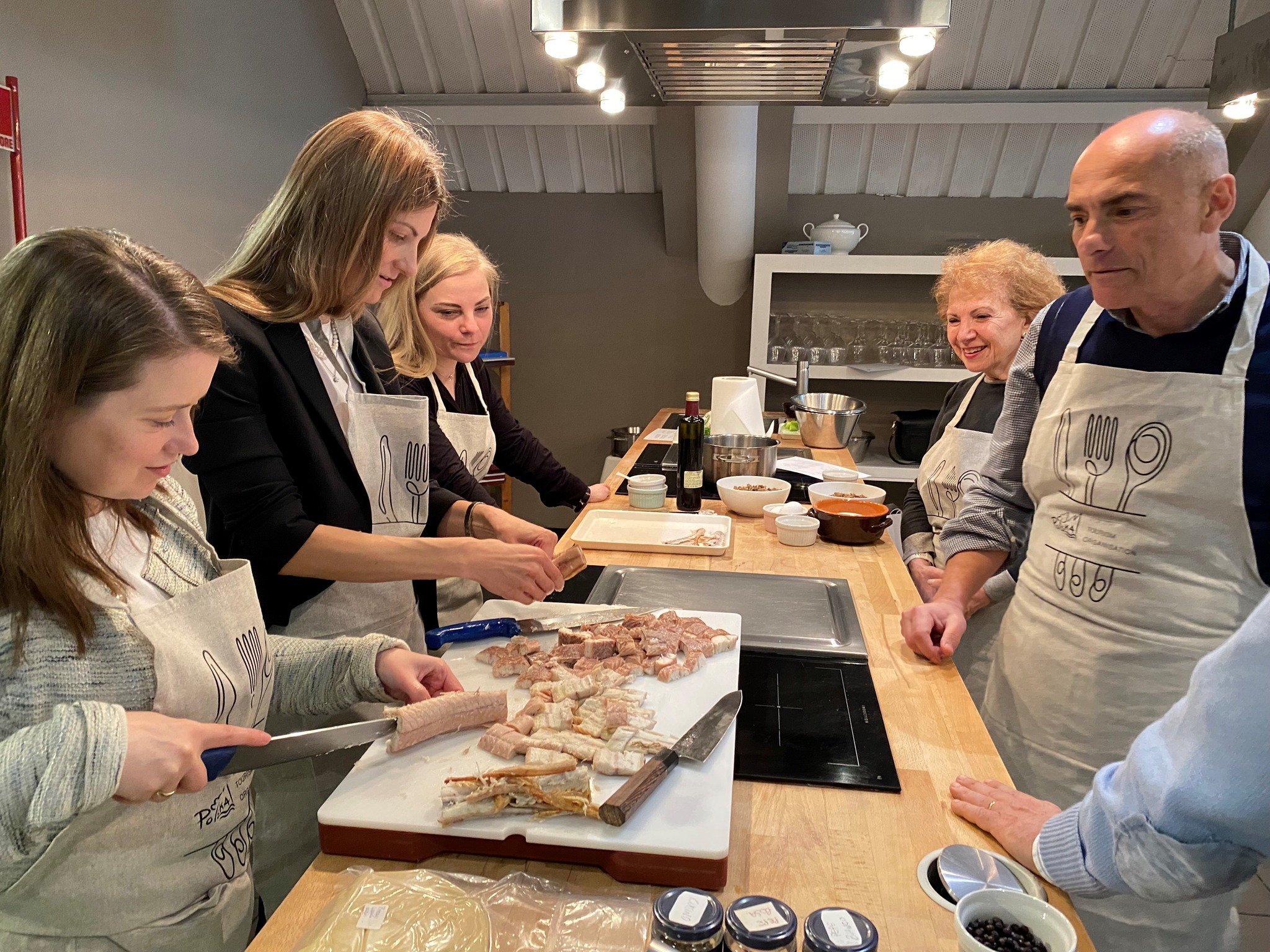 I partecipanti al workshop si sono cimentati nella preparazione di piatti della tradizione polacca rivistati in chiave moderna. A guidarli lo chef Sebastian Maliszewski che ha spiegato i segreti delle varie pietanze, tra cui gli immancabili pierogi (simili ai ravioli), qui preparati con un delizioso ripieno con l'anatra e funghi porcini.