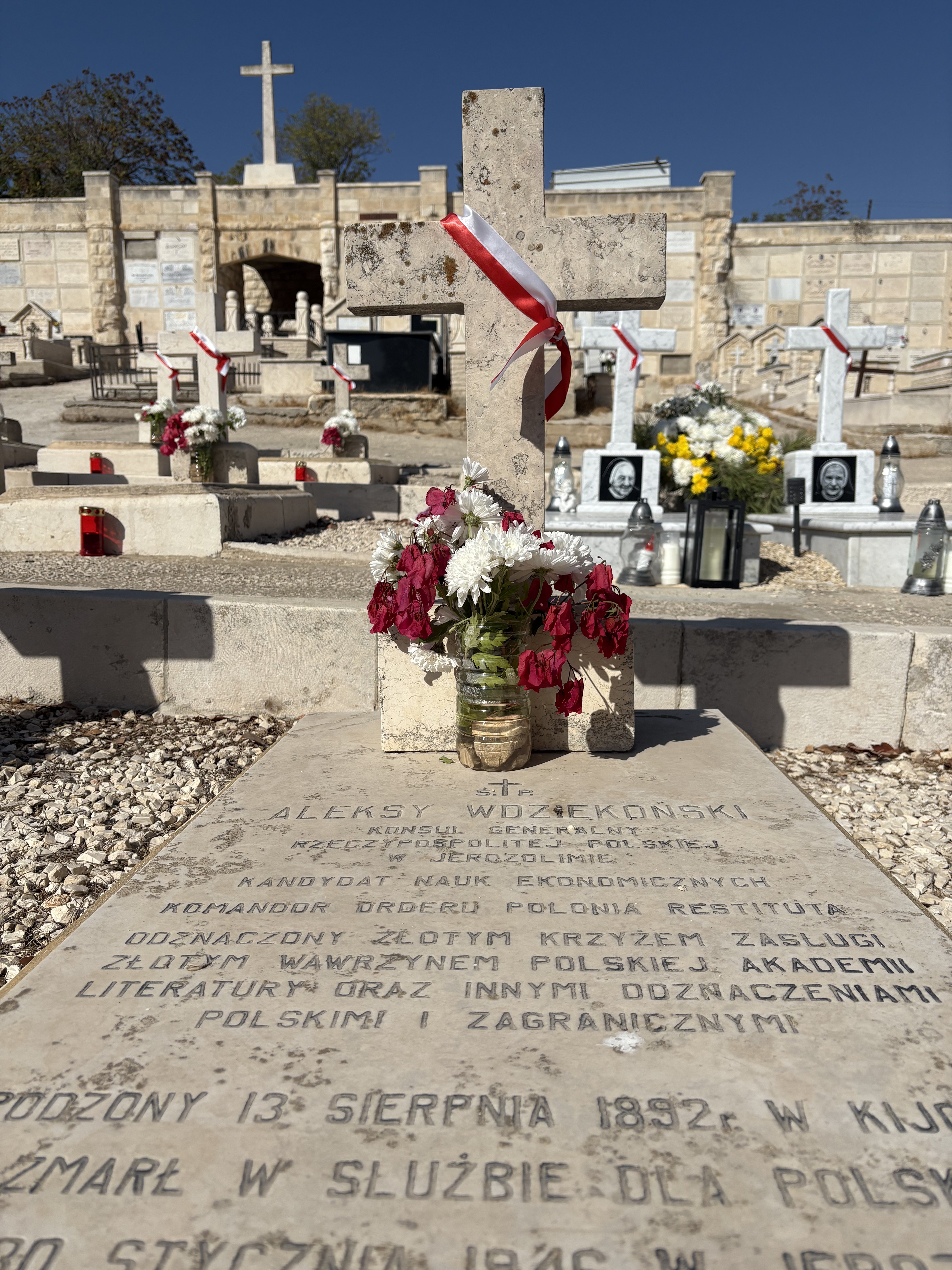 "Polonia i polskie pamiątki to nie tylko pomniki czy groby, które ozdabiamy symbolami narodowymi, ale też my wszyscy, którzy dziś się tu spotykamy, zakonnicy, siostry, studenci, profesorowie, dyplomaci - którzy jesteśmy kontynuacją tej historii 🇵🇱 obecności w Ziemi Świętej. Jesteśmy tu, by pokazać, że nie zapominamy. To bardzo ważne, by Polska nie zapomniała o tych, którzy na kartach historii jako walczący o niepodległość naszej ojczyzny" - wspomniał o. Jerzy Kraj OFM, podczas uroczystości złożenia symbolicznych wieńców i medytacji na polskiej kwaterze nekropolii w Jerozolimie.