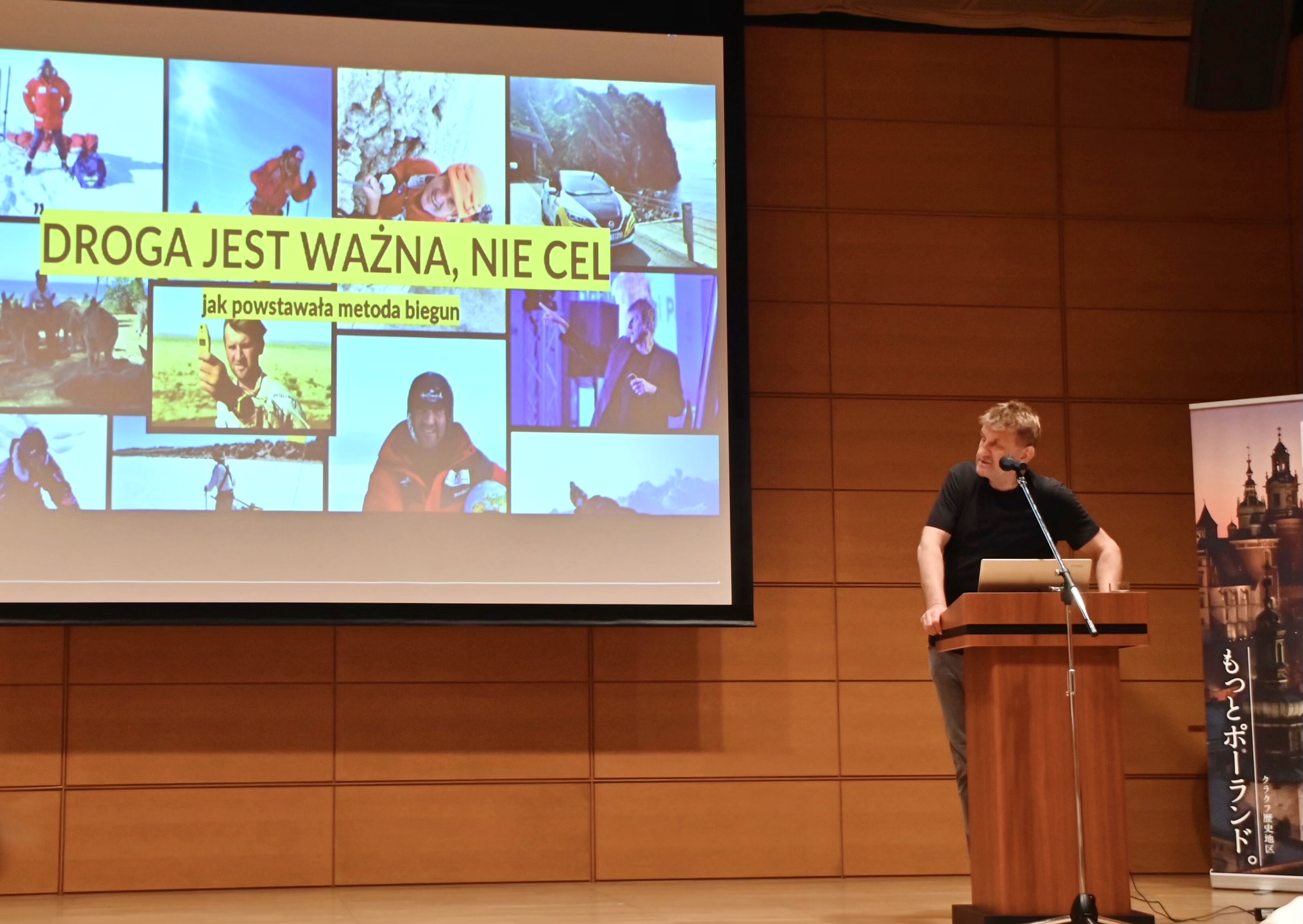 Pan Marek Kamiński wygłosił wykład pod tytułem: „Od wypraw na krańce Ziemi, do globalnej odporności psychicznej”. Po prezentacji, przedstawiciele japońskiej Polonii mieli możliwość porozmawiać z podróżnikiem i zadać mu dodatkowe pytania.