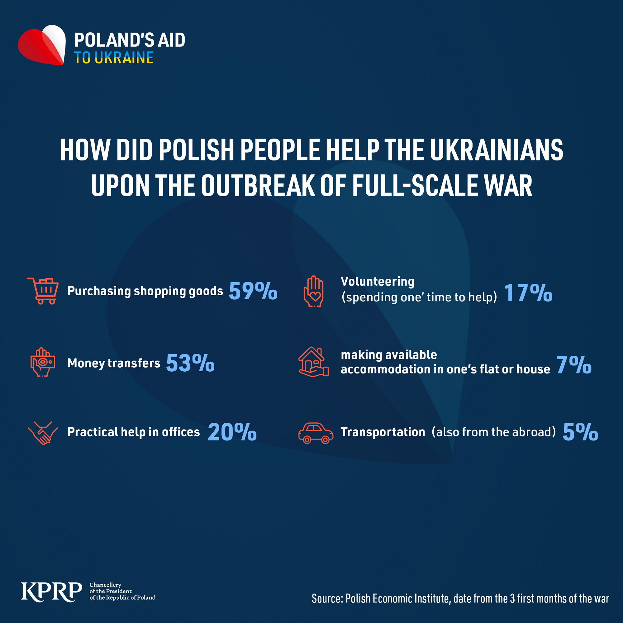 We kindly invite you to read a detailed report on Poland’s support for Ukraine under the following link: https://www.president.pl/news/polish-aid-for-ukraine,93908