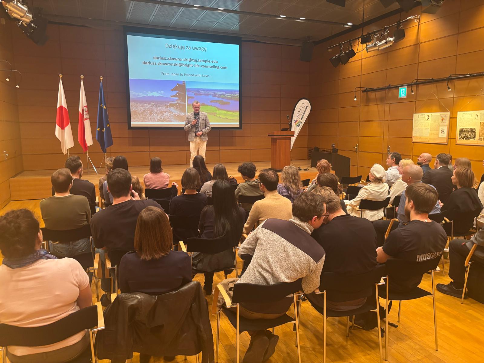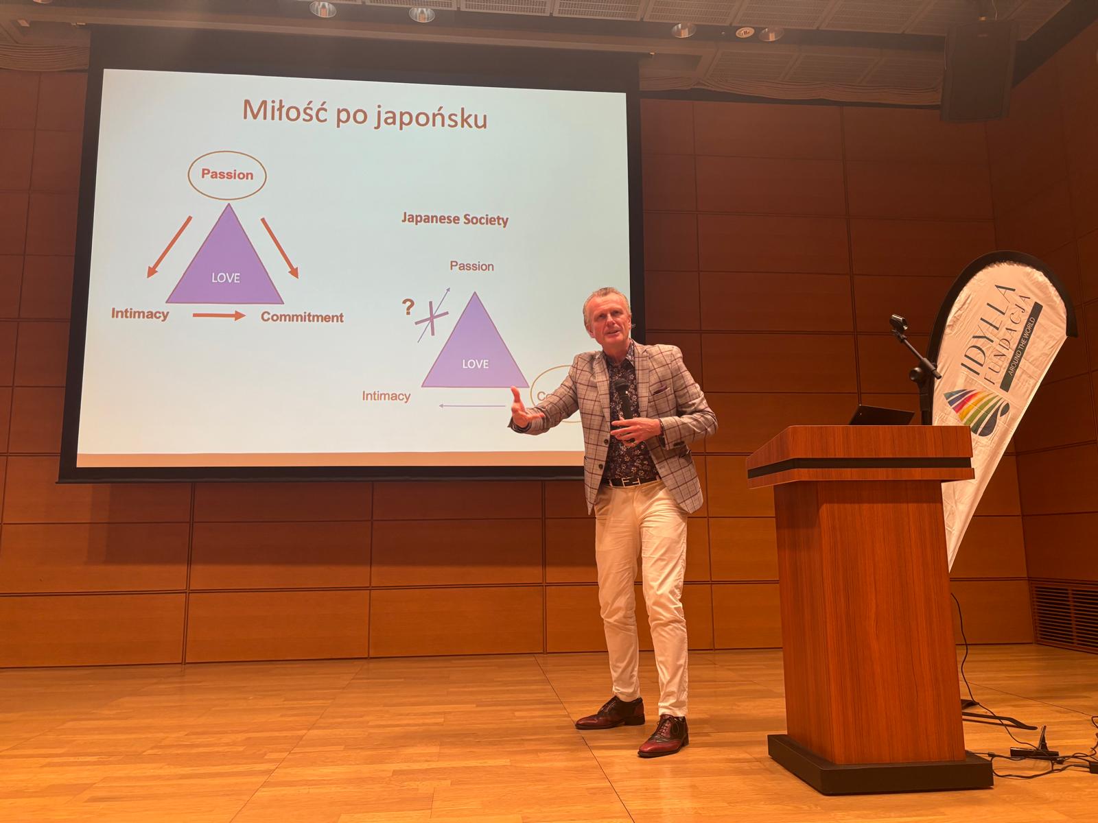 Prelekcja, którą wygłosił dr Dariusz Skowroński – psycholog, seksuolog kliniczny oraz Associate Professor na Temple University Japan Campus, dotyczyła wyzwań, trudności i sytuacji, z którymi na co dzień mierzą się pary polsko-japońskie mieszkające w Japonii. Poruszono tematy dotyczące specyfiki małżeństw międzykulturowych – w relacjach, komunikacji, rodzinie i intymności. W sesji pytań i odpowiedzi oraz w rozmowach kuluarowych uczestnicy dzielili się doświadczeniami ze swoich związków z Japończykami – w kontekście społecznym, kulturowym i psychologicznym.