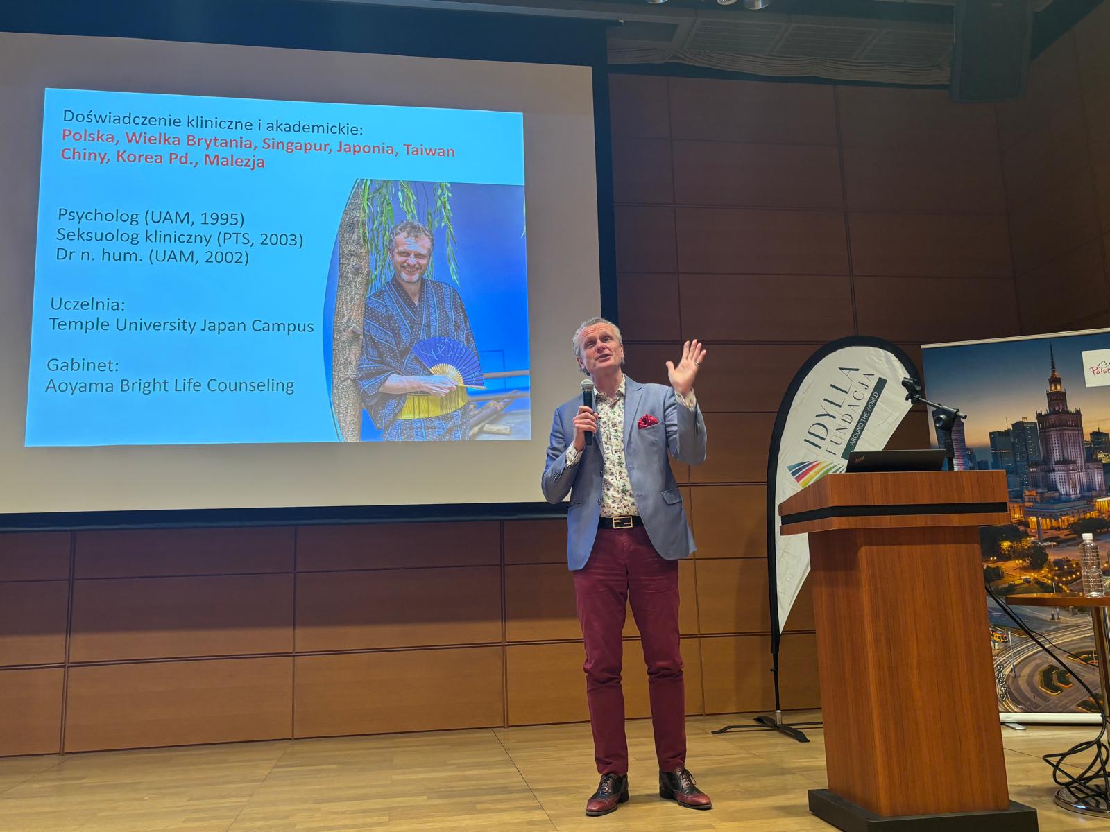 Prelekcja, którą wygłosił dr Dariusz Skowroński – psycholog, seksuolog kliniczny oraz Associate Professor na Temple University Japan Campus, dotyczyła życia w obcej kulturze, stresu akulturacyjnego i sposobach radzenia sobie z wyzwaniami codzienności w Japonii. Poruszono tematy związane z adaptacją, zmianami w tożsamości, źródłami napięcia, była również mowa o praktycznych pomysłach na to, jak dbać o siebie, żyjąc między kulturami.