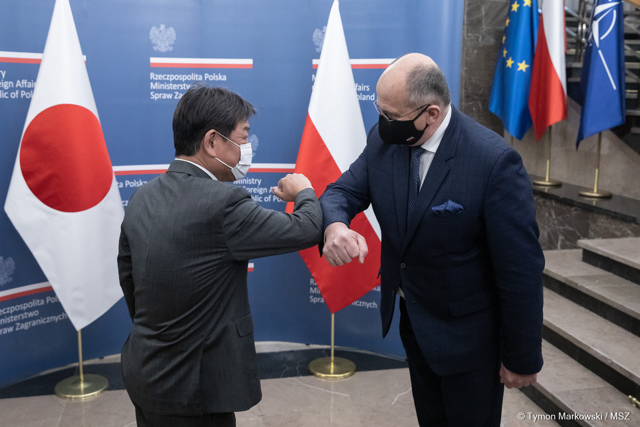 W dniach 6-7 maja w Polsce gościł minister spraw zagranicznych Japonii, Toshimitsu Motegi. Pierwszego dnia swojej wizyty minister Motegi spotkał się z ministrem Zbigniewem Rauem. Szefowie polskiej i japońskiej dyplomacji mówili m.in. stan relacji dwustronnych oraz sytuację międzynarodową, zarówno w Europie, jak również w regionie Indo-Pacyfiku.