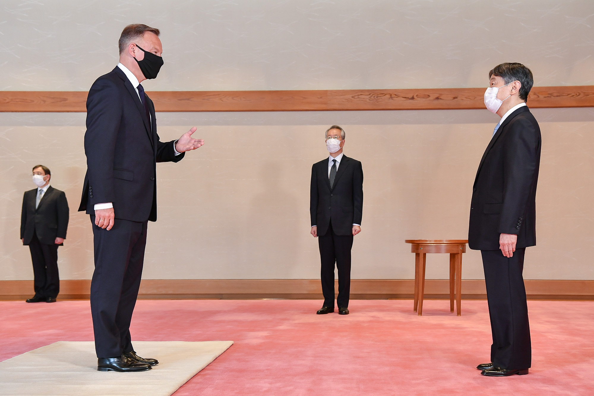 W trakcie pobytu w Japonii Prezydent Duda został również przyjęty na audiencji u Jego Cesarskiej Mości Cesarza Naruhito, a także spotkał się z Premierem Yoshihide Sugą, z którym rozmawiał m.in. na temat politycznej i gospodarczej współpracy dwustronnej oraz zaangażowania japońskich podmiotów biznesowych i inwestycyjnych w ramach Inicjatywy Trójmorza.