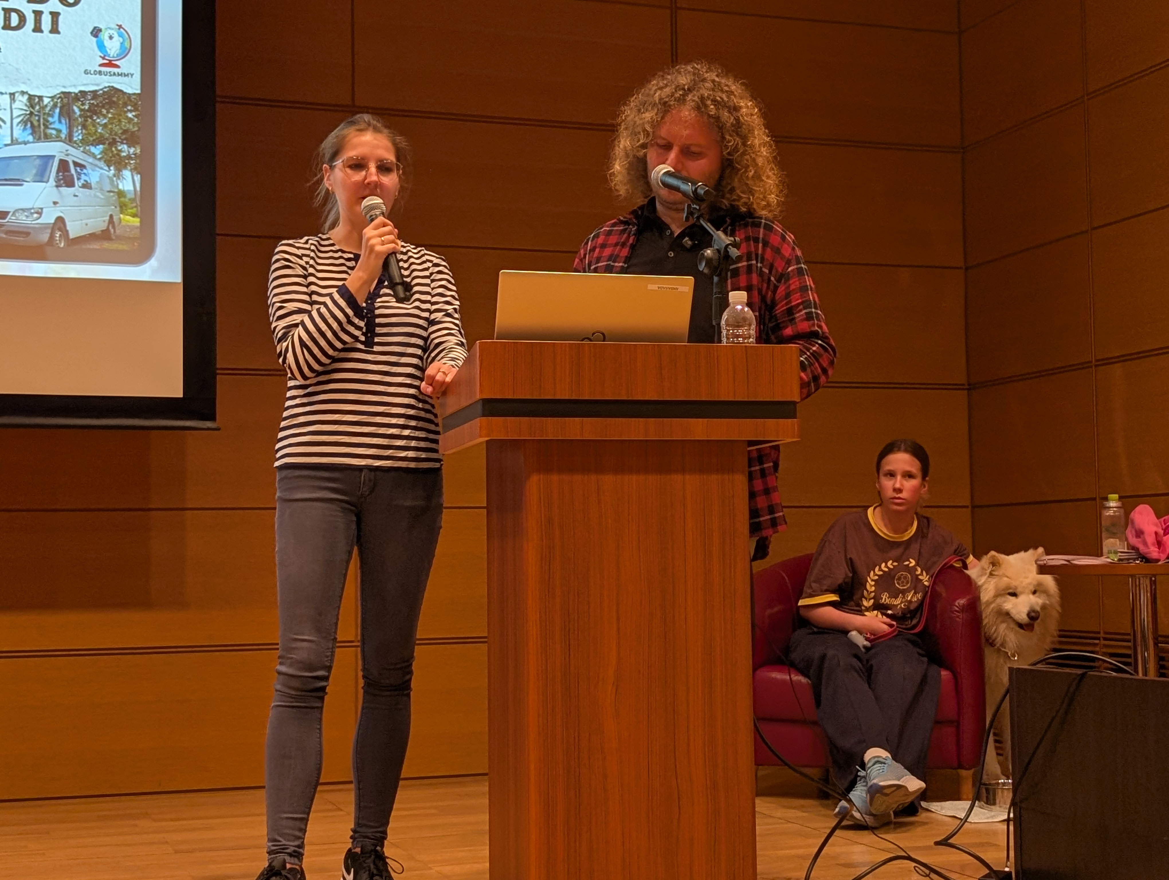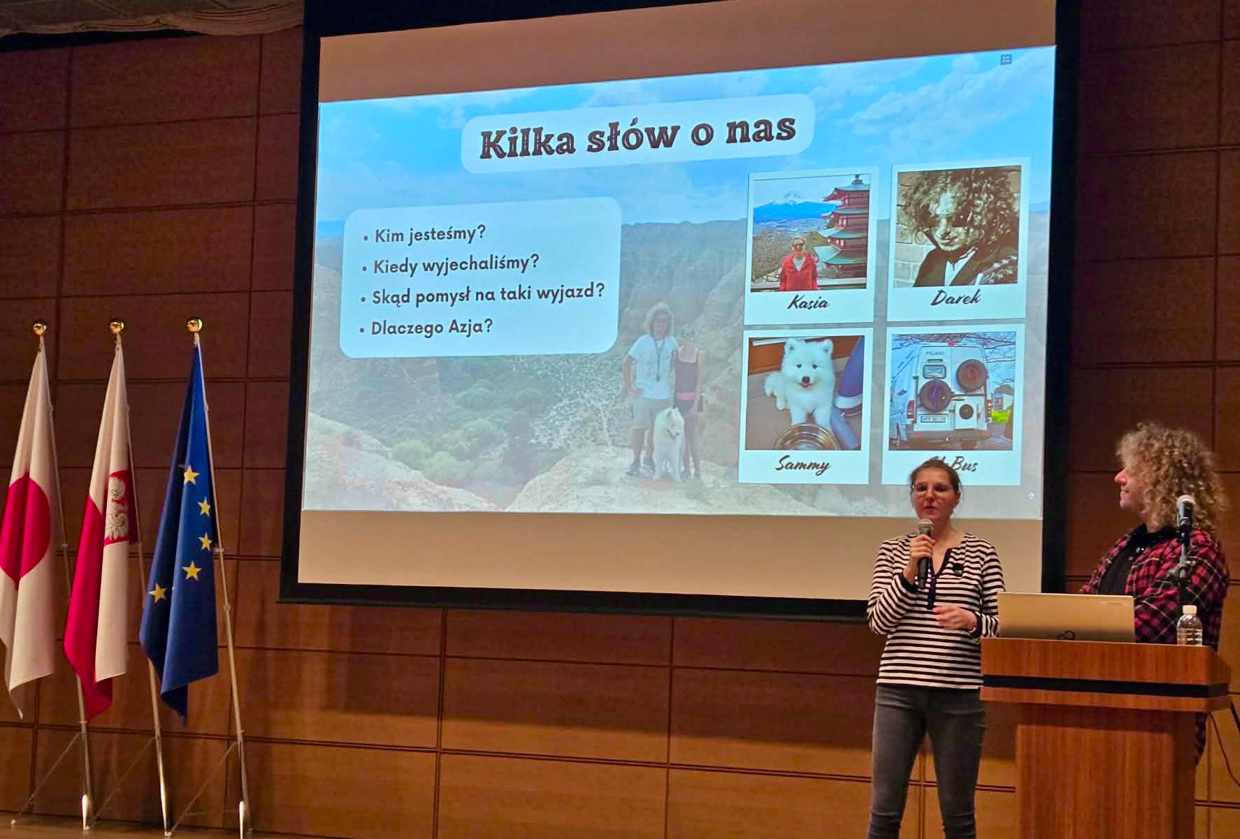 Podróżnicy przedstawili niezwykle ciekawą prezentację na temat swojej wyprawy, podczas której odwiedzili 12 państw azjatyckich – od wciąż mało znanego Kirgistanu, przez różnorodne Chiny, po rajską Tajlandię i wreszcie Japonię. Była to inspirująca, szczera i momentami zaskakująca opowieść o wolności, odkrywaniu świata poza utartymi szlakami, jak również o determinacji i radzeniu sobie z licznymi wyzwaniami organizacyjnymi i przeciwnościami losu na trasie.