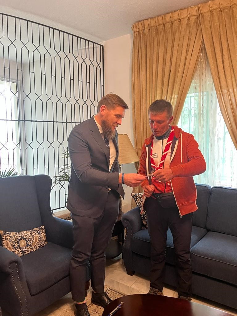 The longest leg of the journey in the footsteps of Anders' corps is the one in Jordan. The route to Amman is as long as 1800 km. During a meeting with Ambassador Lucjan Karpiński, the baton was symbolically passed between the individual groups of the relay.