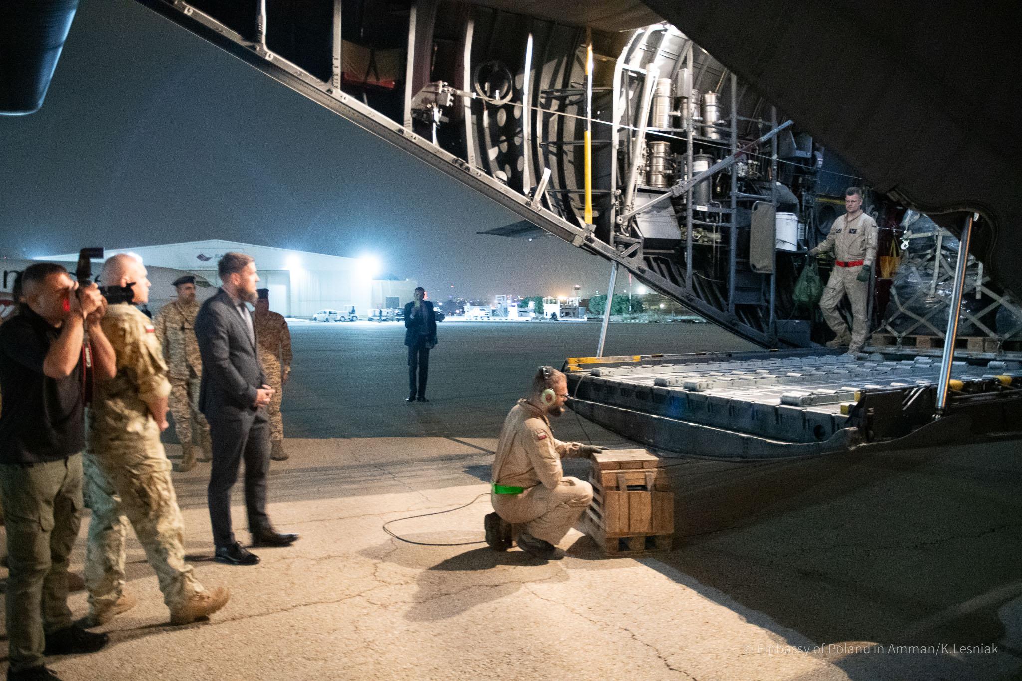 Ambassador Lucjan Karpiński and Defense Attaché col Adam Tonderys with Embassy’s team attended the handover of Polish aid at Marka military airport near Amman.