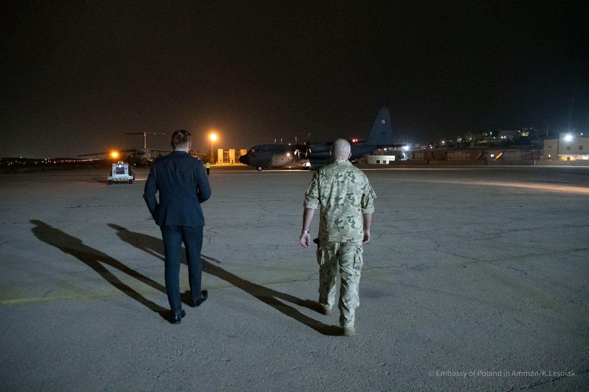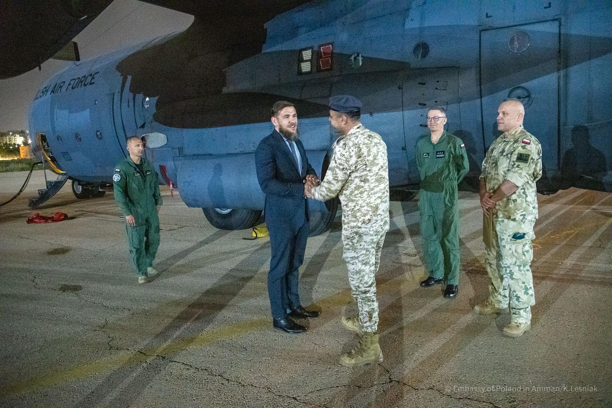 W przekazaniu polskiej pomocy na wojskowym lotnisku w Marce pod Ammanem uczestniczył ambasador Lucjan Karpiński wraz z Attaché Obrony płk Adamem Tonderysem i zespołem placówki.