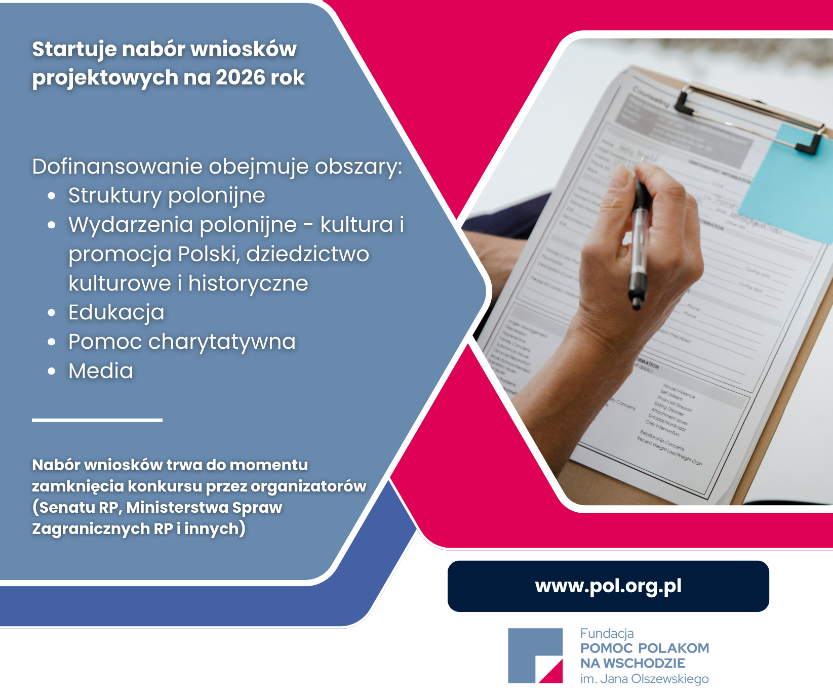Fundacja "Pomoc Polakom na Wschodzie" im. Jana Olszewskiego ogłasza nabór wniosków na dofinansowanie w roku 2026.