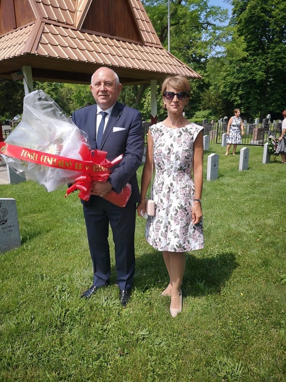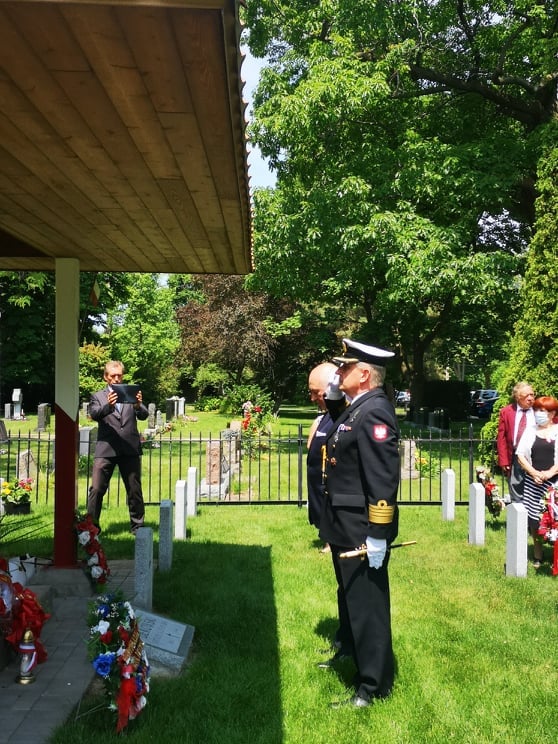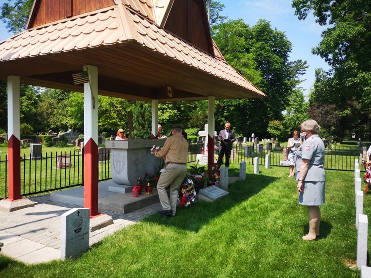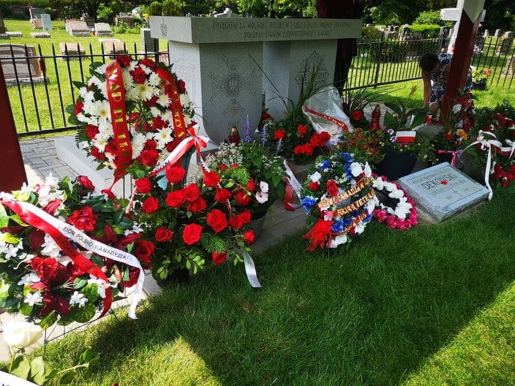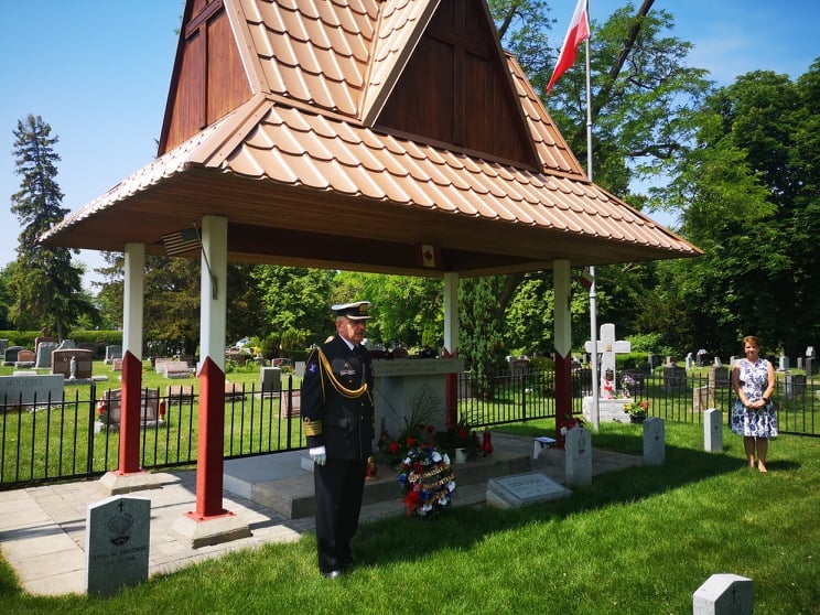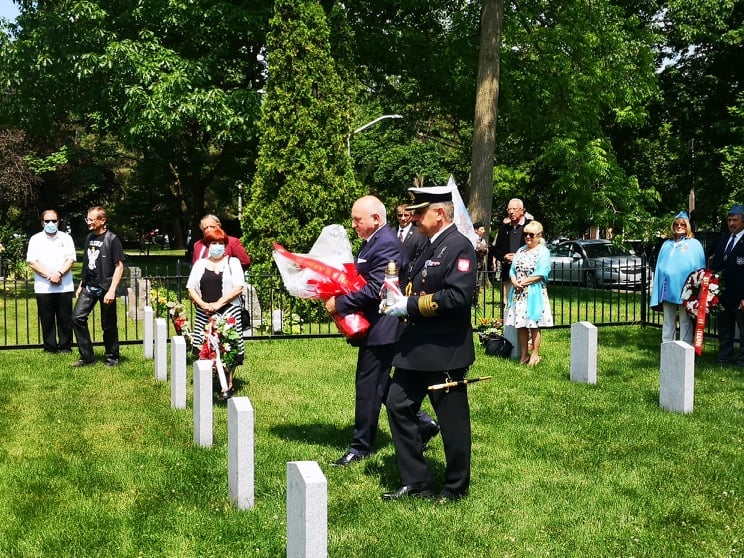 Mimo utrudnień związanych z pandemią, delegacje organizacji polonijnych z USA i Kanady złożyły kwiaty na polskim cmentarzu wojskowym. Po odegraniu hymnów państwowych Kanady, USA i Polski, Attache Obrony kmdr Krzysztof Książek wręczył przyznany przez Ministra Obrony Narodowej Złoty Medal Wojska Polskiego p. Zofii Soja, prezes Okręgu Niagara KPK. Pani Soja wraz z członkami Kongresu swojego Okręgu od lat dba o utrzymanie polskiego cmentarza i organizuje coroczne uroczystości w tym miejscu.
