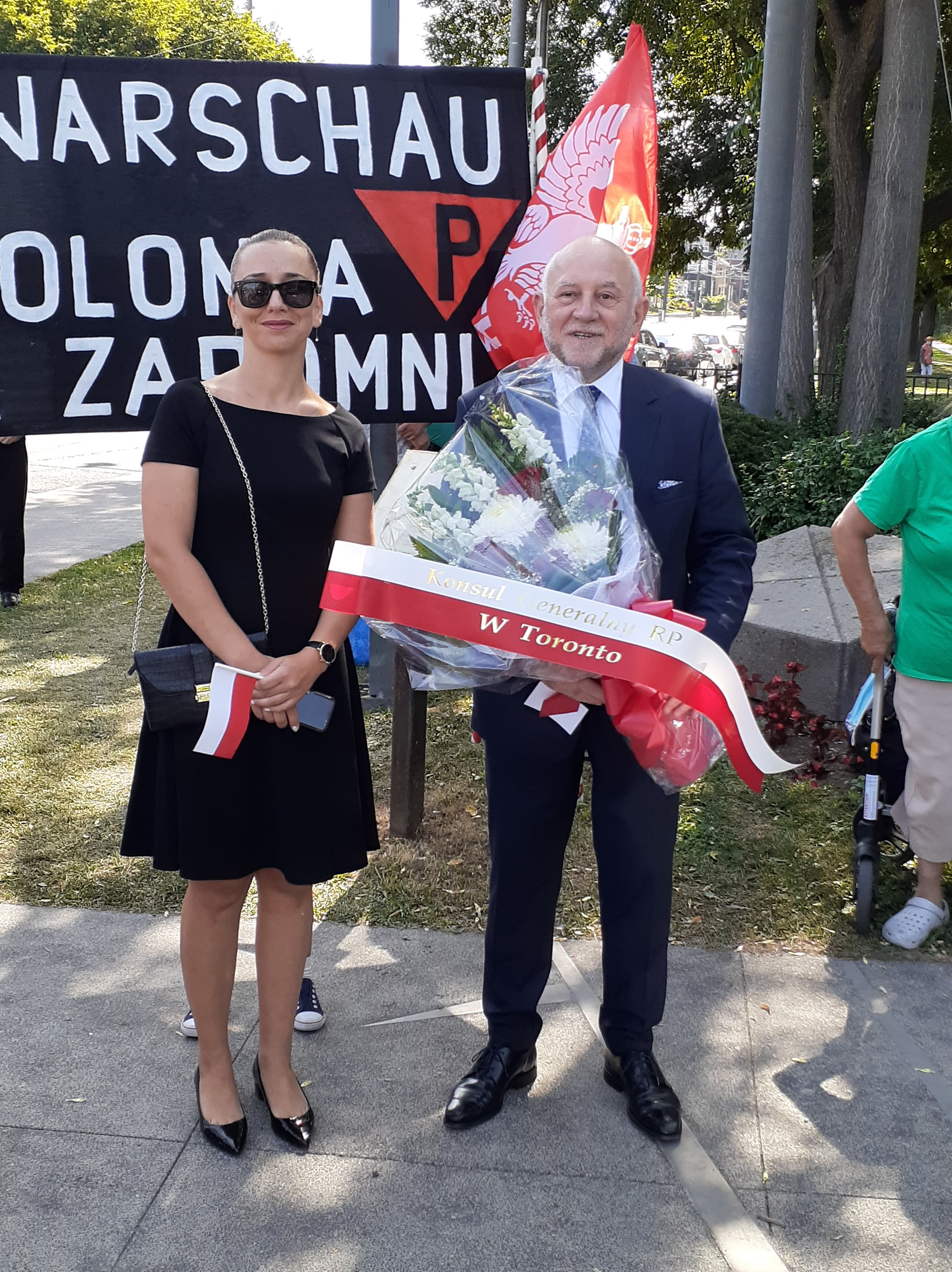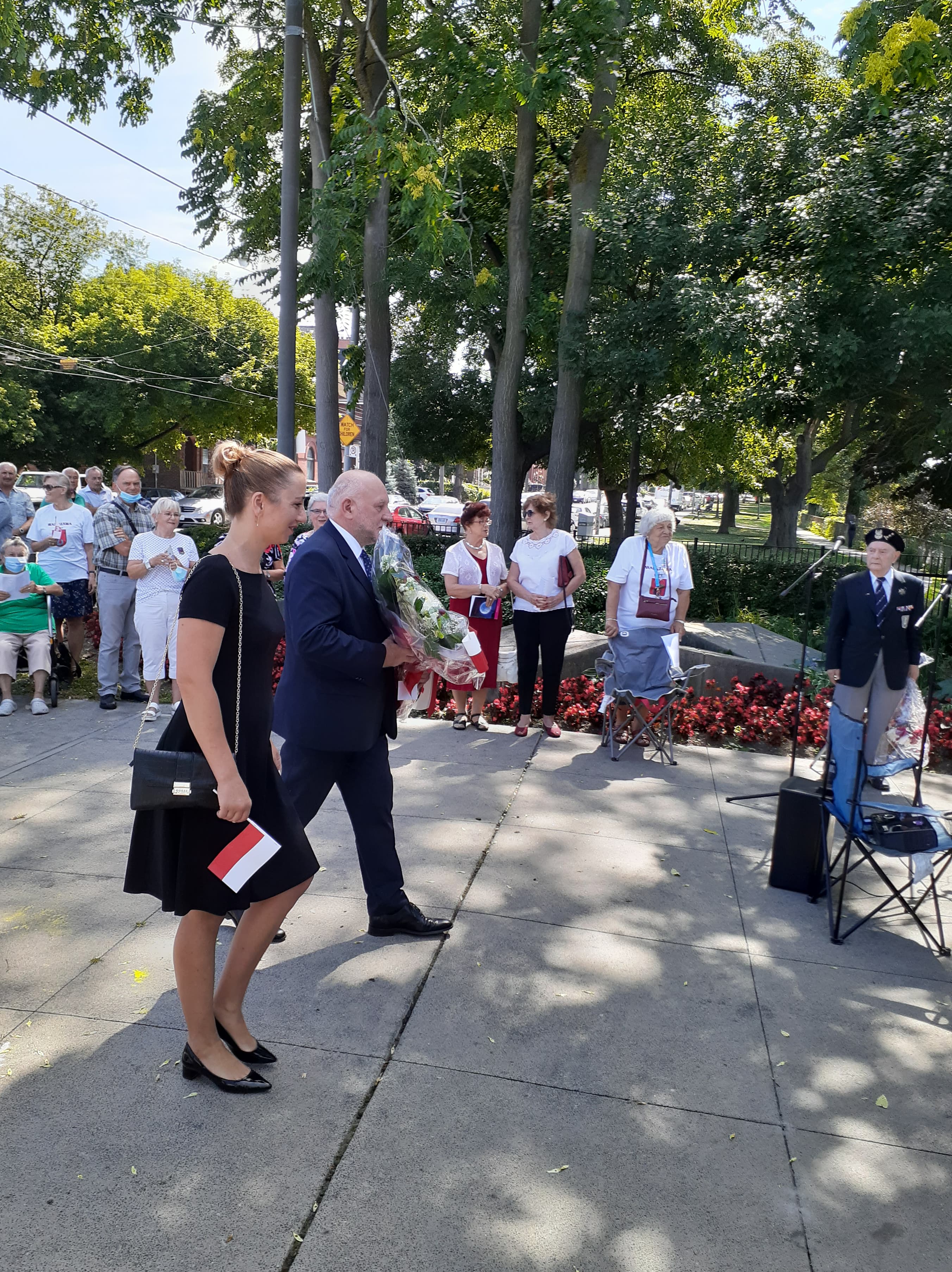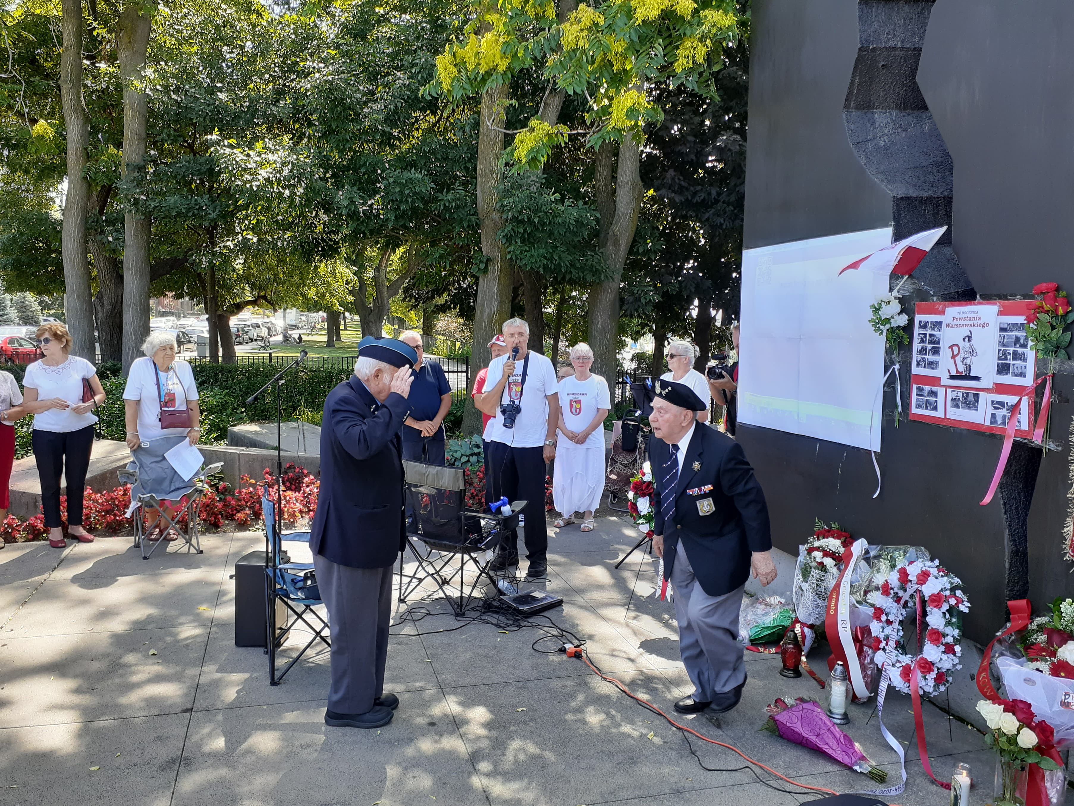 Podczas uroczystości zorganizowanej przez Towarzystwo Warszawskie w Toronto kwiaty pod Pomnikiem złożył Konsul Generalny Krzysztof Grzelczyk wraz z wicekonsul Sylwią Czerwińską oraz przedstawiciele organizacji polonijnych m.in.: Kongres Polonii Kanadyjskiej, KPK - oddział Toronto, Związek Polaków w Kanadzie, Koło Pań Nadzieja, jak również licznie przybyła Polonia. Obecny był również p. Stanisław Woźniak – uczestnik Powstania Warszawskiego, który w krótkim wystąpieniu odniósł się do wspomnień z tego okresu. Ceremonia wzbogacona była okolicznościową autorską poezją p. Wandy Bogusz, lokalnej działaczki polonijnej oraz pieśniami powstańczymi.