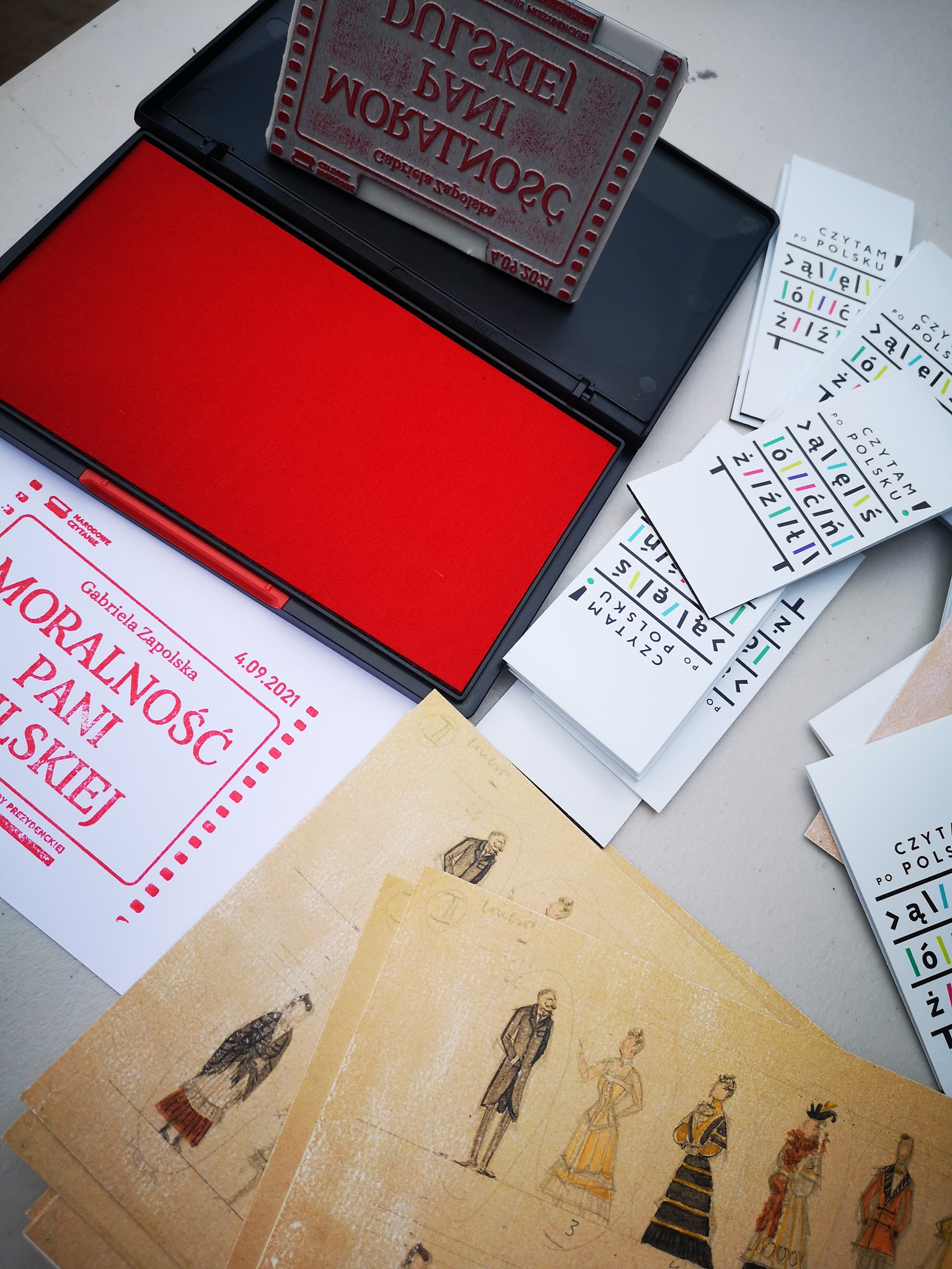 Wszyscy uczestnicy Pikniku otrzymali pamiątkowe kartki z pieczątką Narodowego Czytania 2021.