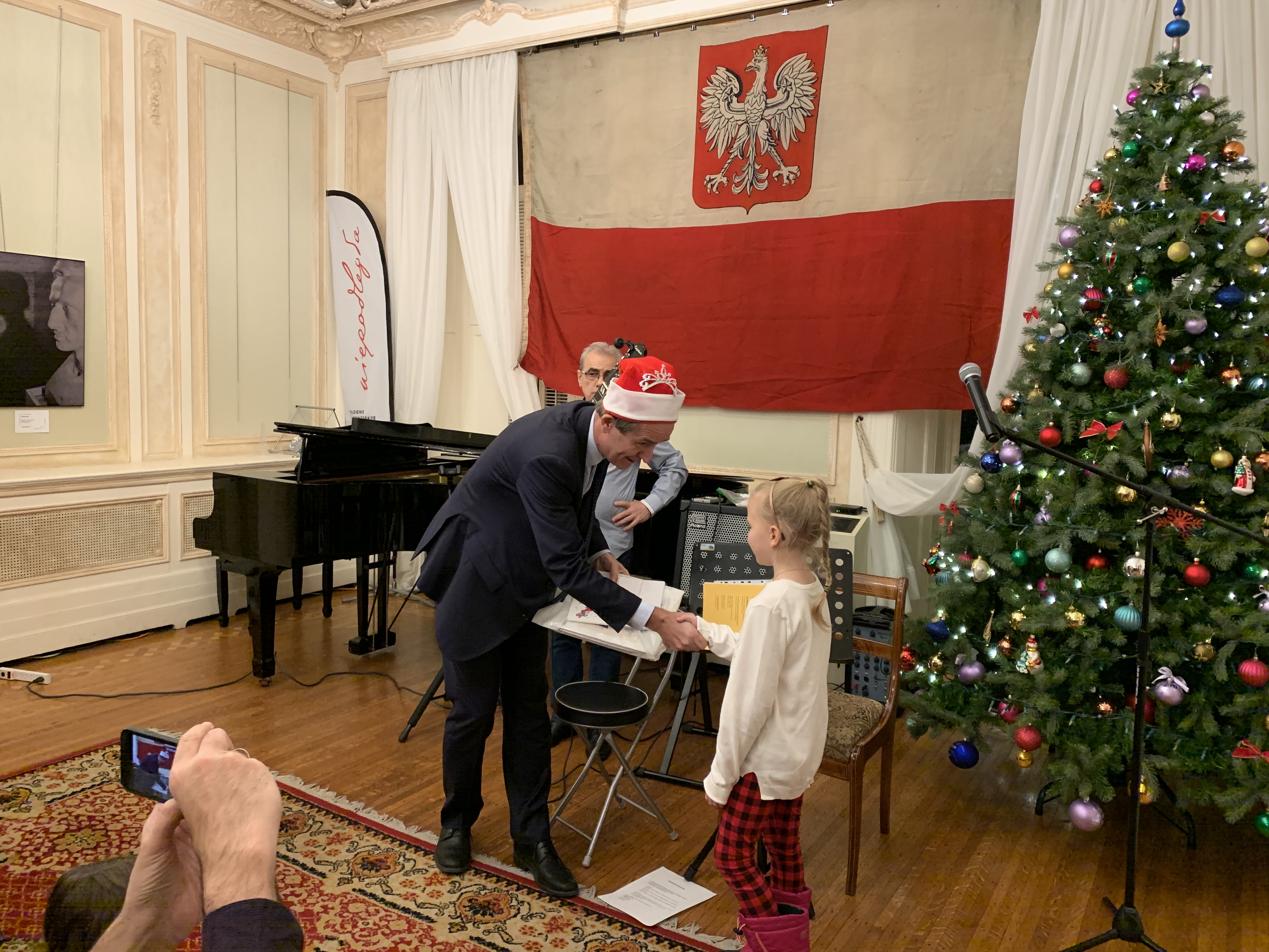 W trakcie spotkania konsul generalny wręczył nagrody laureatom konkursu na projekt kartki świątecznej ogłoszonego przez Konsulat Generalny RP w Montrealu.